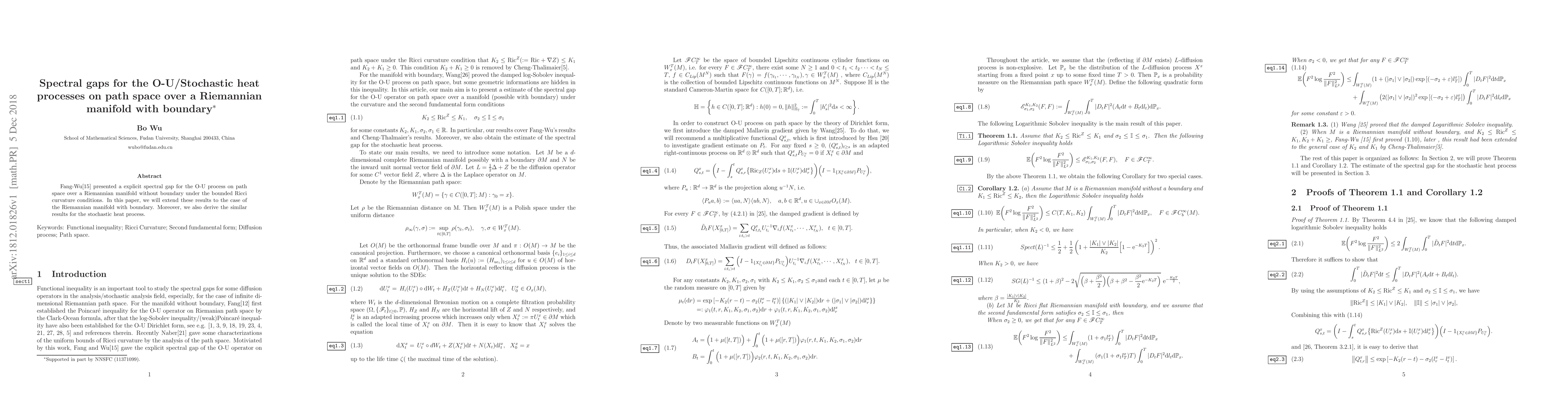 This paper extends spectral gap results for the O-U process to Riemannian manifolds with boundary, building on Fang-Wu's work for manifolds without boundary. It also derives analogous results for the stochastic heat process on these manifolds.