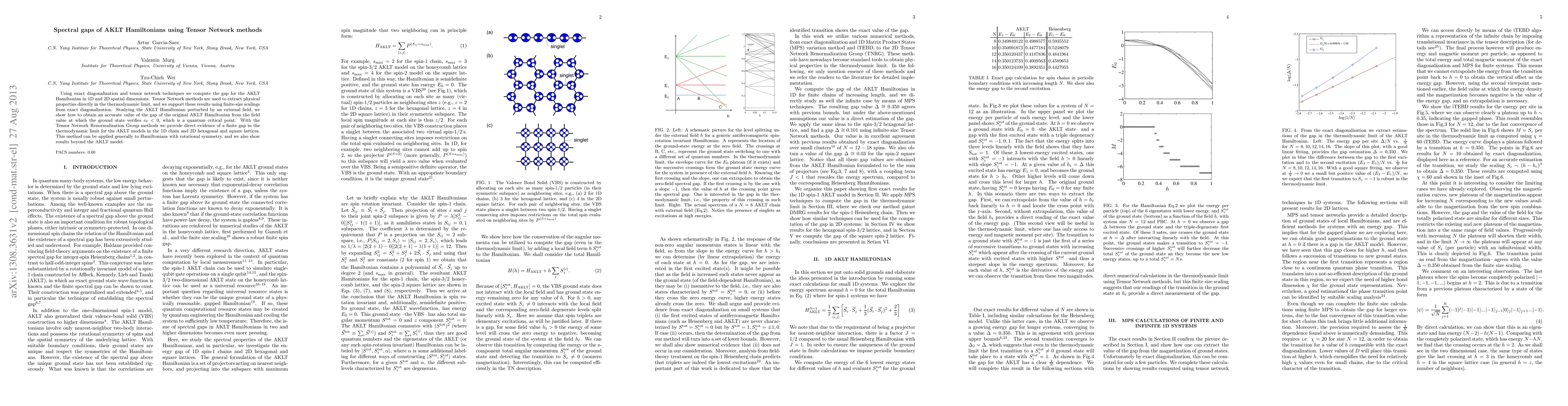 This paper uses tensor network methods to compute the spectral gap for the AKLT Hamiltonian in 1D and 2D, demonstrating a finite gap in the thermodynamic limit for various lattice structures. The study also shows how the gap can be inferred from the critical point where the ground state energy becomes negative under an external field.