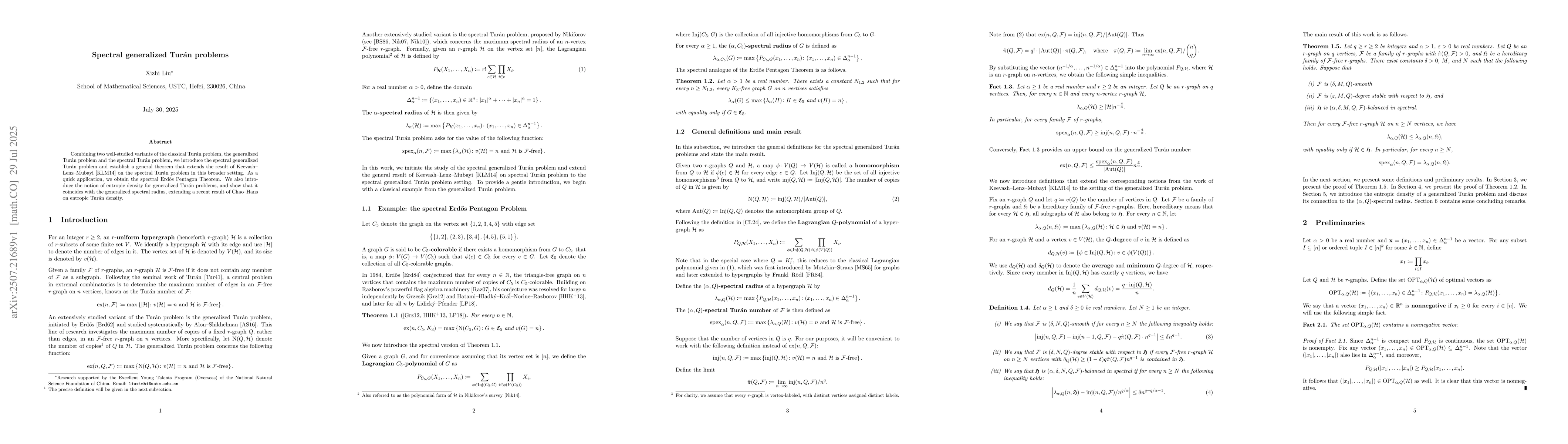 Combining two well-studied variants of the classical Tur\'{a}n problem, the generalized Tur\'{a}n problem and the spectral Tur\'{a}n problem, we introduce the spectral generalized Tur\'{a}n problem and establish a general theorem that extends the result of Keevash--Lenz--Mubayi~\cite{KLM14} on the spectral Tur\'{a}n problem in this broader setting. As a quick application, we obtain the spectral Erd\H{o}s Pentagon Theorem. We also introduce the notion of entropic density for generalized Tur\'{a}n problems, and show that it coincides with the generalized spectral radius, extending a recent result of Chao--Hans on entropic Tur\'{a}n density.