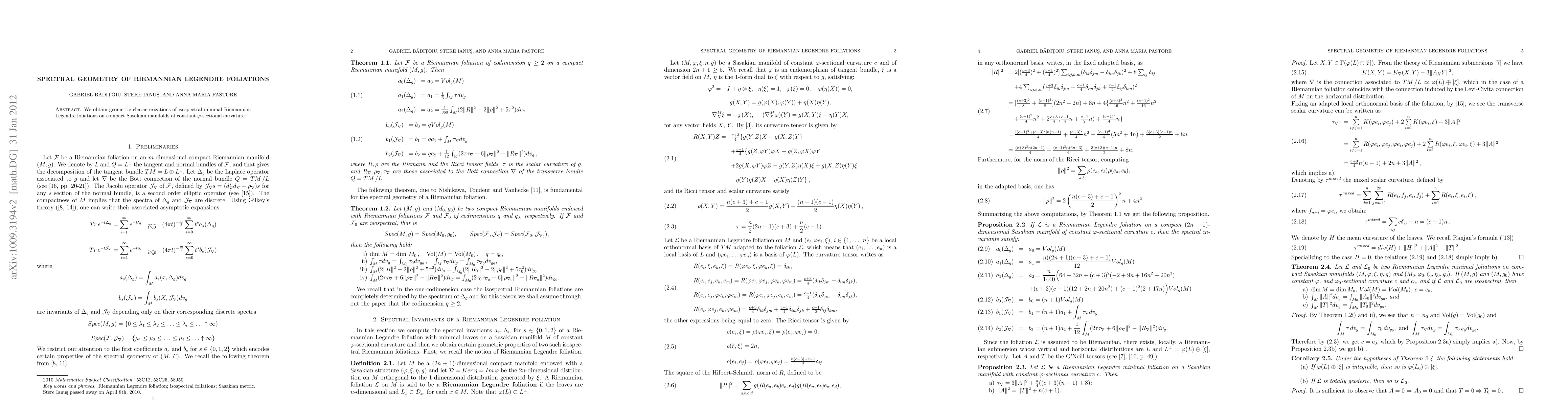 Summary: This paper provides geometric characterizations for isospectral minimal Riemannian Legendre foliations on compact Sasakian manifolds with constant $\phi$-sectional curvature, elucidating their spectral properties.