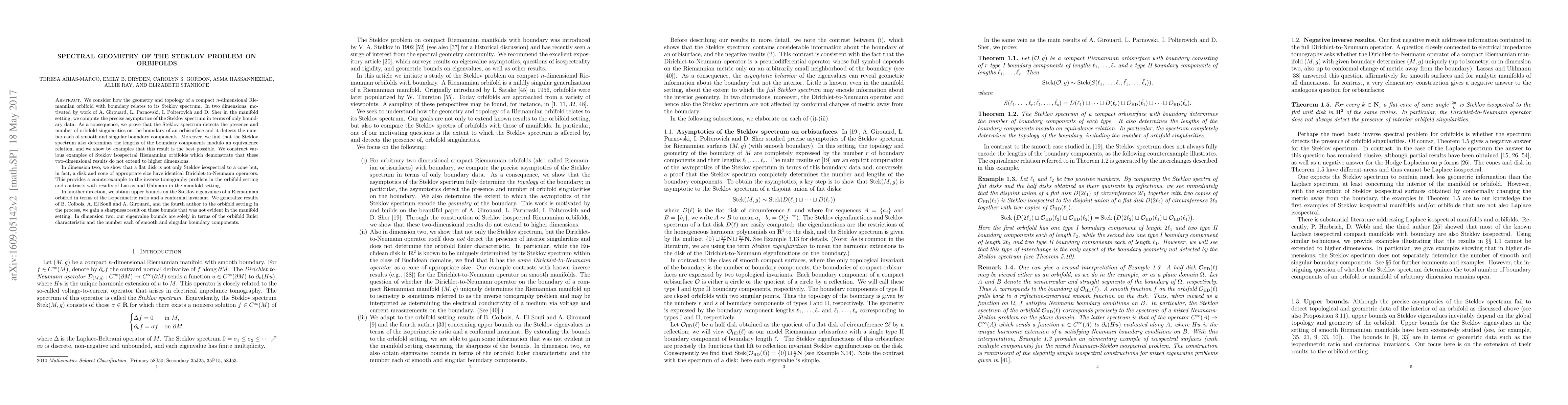 The study explores how the Steklov spectrum of a compact Riemannian orbifold with boundary relates to its geometry and topology, revealing that it detects singularities on the boundary, smooth components, and their lengths, but not interior singularities or Euler characteristic in two dimensions.