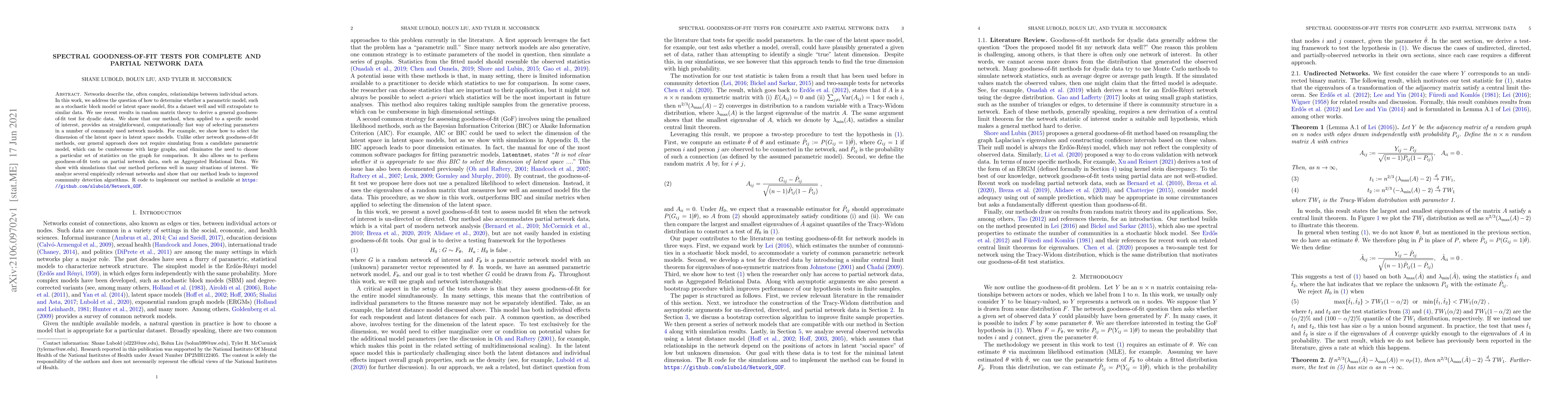 This paper proposes a new spectral goodness-of-fit test for assessing how well parametric models like stochastic block models fit network data, offering a computationally efficient alternative to existing methods. The approach works for both complete and partial network data, improving community detection and is available via R code on Github.