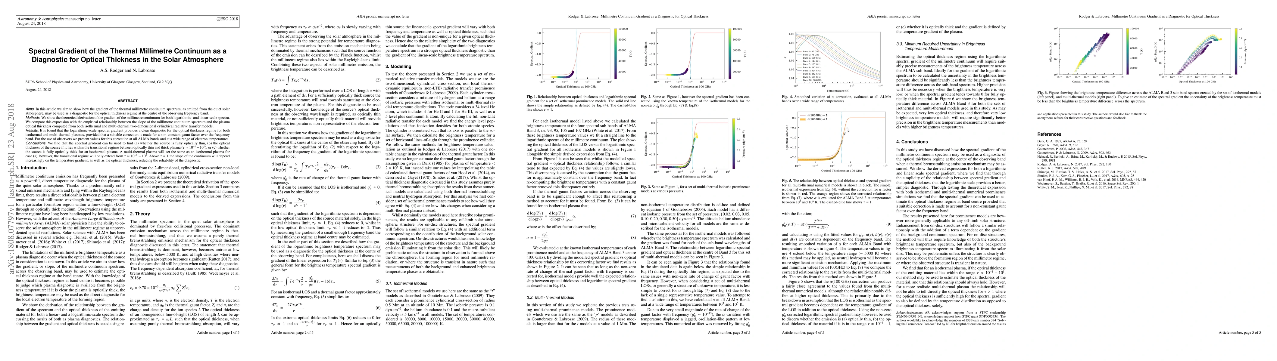 This paper demonstrates that the gradient of the thermal millimetre continuum spectrum can serve as a diagnostic tool for determining the optical thickness of the solar atmosphere. The study finds that the logarithmic-scale spectral gradient effectively identifies the optical thickness regime, with necessary corrections for varying Gaunt factors across frequency bands.
