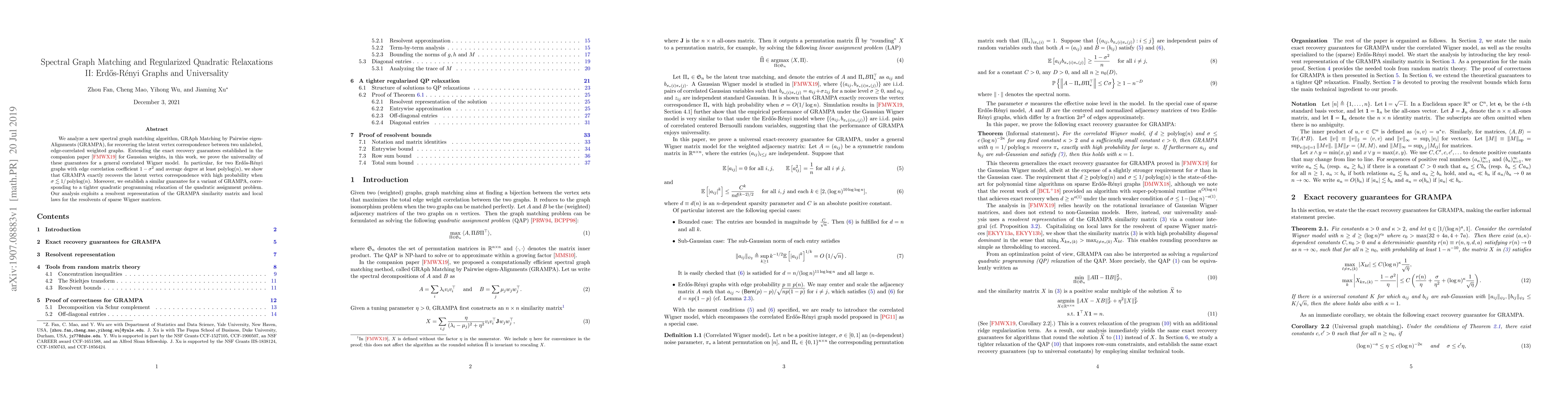 We analyze a new spectral graph matching algorithm, GRAph Matching by Pairwise eigen-Alignments (GRAMPA), for recovering the latent vertex correspondence between two unlabeled, edge-correlated weighted graphs. Extending the exact recovery guarantees established in the companion paper for Gaussian weights, in this work, we prove the universality of these guarantees for a general correlated Wigner model. In particular, for two Erd\H{o}s-R\'enyi graphs with edge correlation coefficient $1-\sigma^2$ and average degree at least $\operatorname{polylog}(n)$, we show that GRAMPA exactly recovers the latent vertex correspondence with high probability when $\sigma \lesssim 1/\operatorname{polylog}(n)$. Moreover, we establish a similar guarantee for a variant of GRAMPA, corresponding to a tighter quadratic programming relaxation of the quadratic assignment problem. Our analysis exploits a resolvent representation of the GRAMPA similarity matrix and local laws for the resolvents of sparse Wigner matrices.