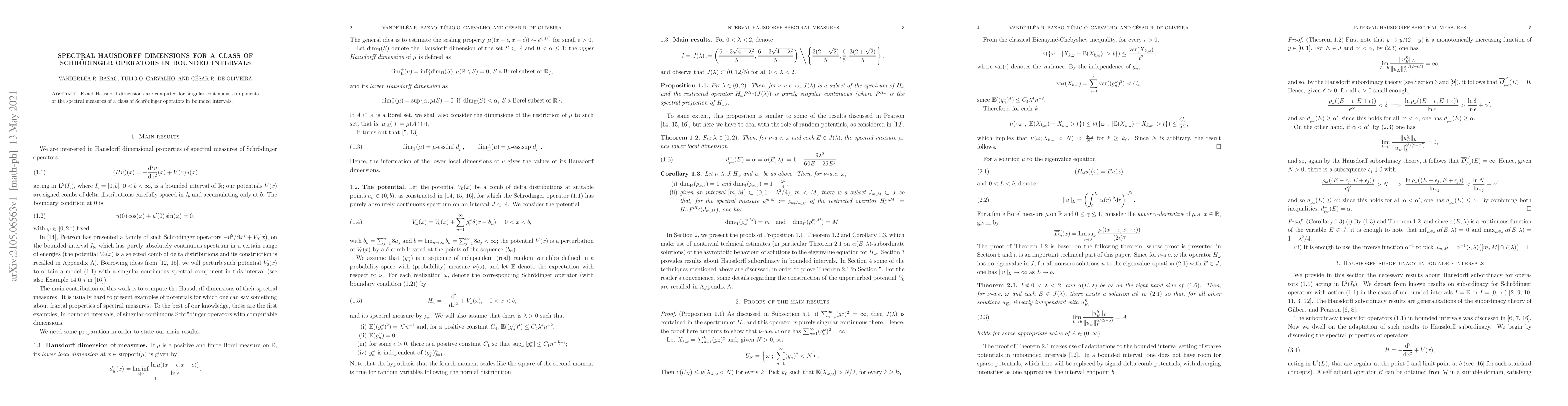 Summary: The paper computes the exact Hausdorff dimensions for singular continuous spectral components of a specific class of Schrödinger operators defined on bounded intervals. This provides a detailed spectral analysis of the operators' spectral measures.