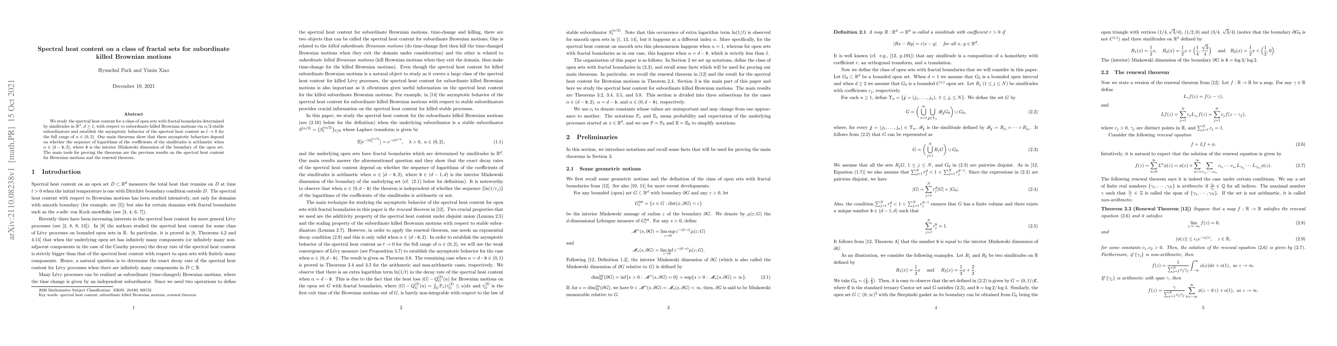 This paper investigates the spectral heat content for open sets with fractal boundaries under subordinate killed Brownian motions, revealing asymptotic behavior as time approaches zero. The study finds that the asymptotic behavior depends on the arithmetic nature of the logarithms of the similitude coefficients, particularly when the exponent $\alpha$ lies within a specific range.