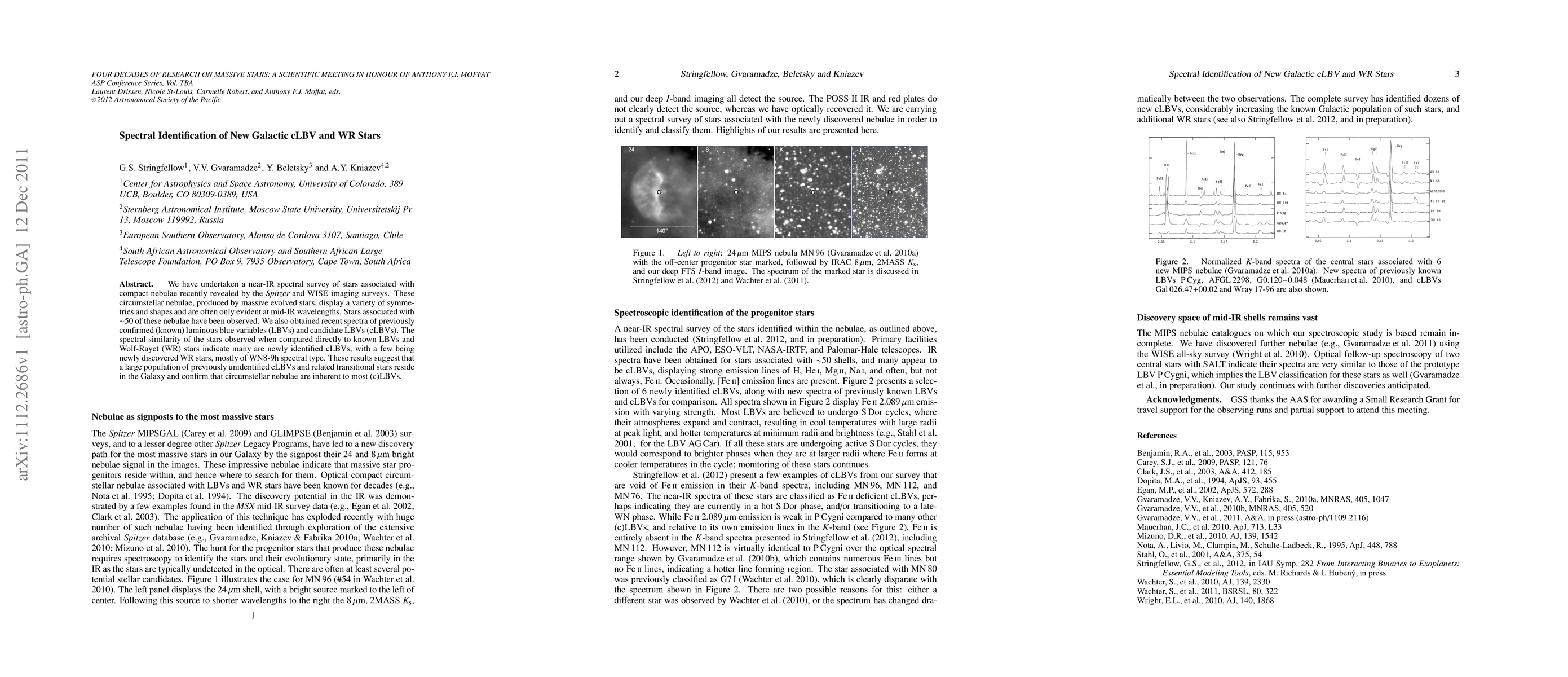 We have undertaken a near-IR spectral survey of stars associated with compact nebulae recently revealed by the Spitzer and WISE imaging surveys. These circumstellar nebulae, produced by massive evolved stars, display a variety of symmetries and shapes and are often only evident at mid-IR wavelengths. Stars associated with ~50 of these nebulae have been observed. We also obtained recent spectra of previously confirmed (known) luminous blue variables (LBVs) and candidate LBVs (cLBVs). The spectral similarity of the stars observed when compared directly to known LBVs and Wolf-Rayet (WR) stars indicate many are newly identified cLBVs, with a few being newly discovered WR stars, mostly of WN8-9h spectral type. These results suggest that a large population of previously unidentified cLBVs and related transitional stars reside in the Galaxy and confirm that circumstellar nebulae are inherent to most (c)LBVs.