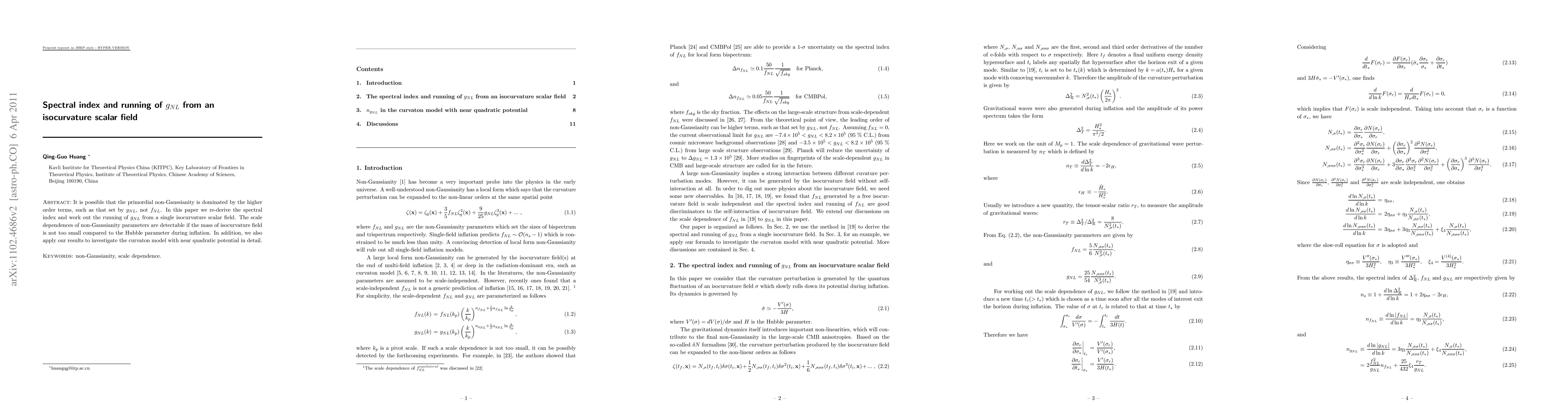 It is possible that the primordial non-Gaussianity is dominated by the higher order terms, such as that set by $g_{NL}$, not $f_{NL}$. In this paper we derive the spectral index and running of $g_{NL}$ from a single isocurvature scalar field. The scale dependences of non-Gaussianity parameters are detectable if the mass of isocurvature field is not too small compared to the Hubble parameter during inflation. In addition, we also apply our results to investigate the curvaton model with near quadratic potential in detail.