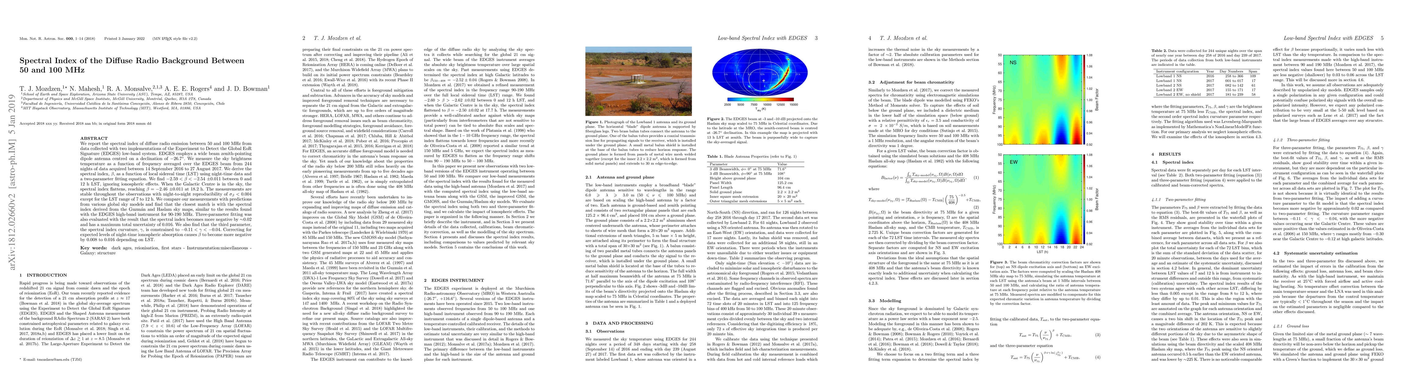 This paper reports the spectral index of diffuse radio emission between 50 and 100 MHz, measured using the EDGES low-band system, finding $\beta$ ranging from -2.59 to -2.54, with a flattening to -2.46 near the Galactic Centre. The measurements show high night-to-night reproducibility and are consistent with predictions from the Guzmán and Haslam sky maps.