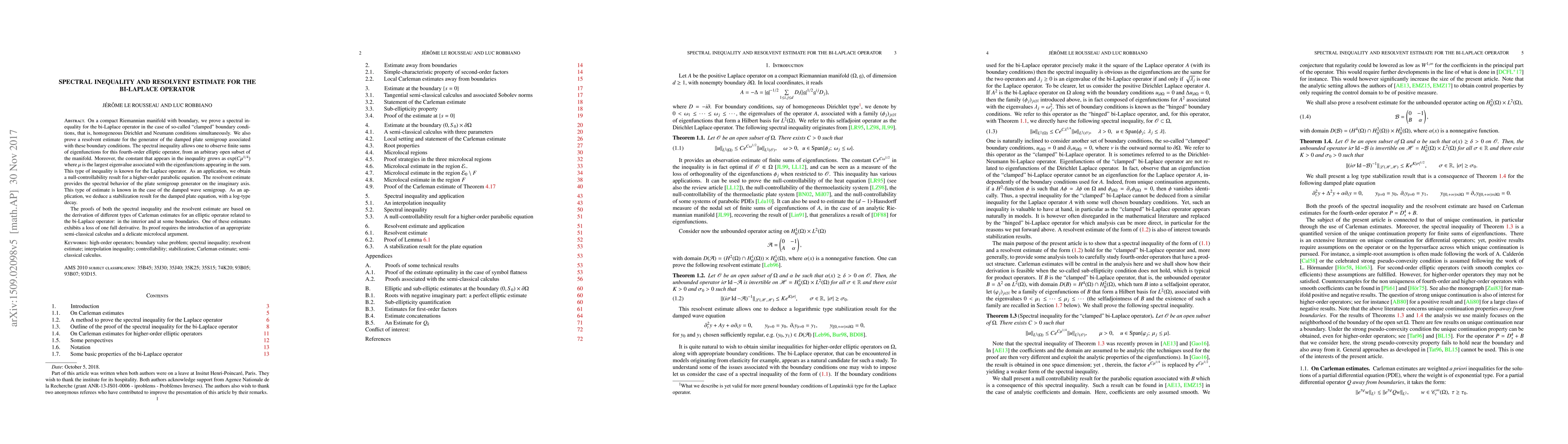 Researchers prove a spectral inequality for the bi-Laplace operator on compact Riemannian manifolds with clamped boundary conditions, allowing observation of finite sums of eigenfunctions. The result also leads to a stabilization theorem for the damped plate equation with log-type decay.