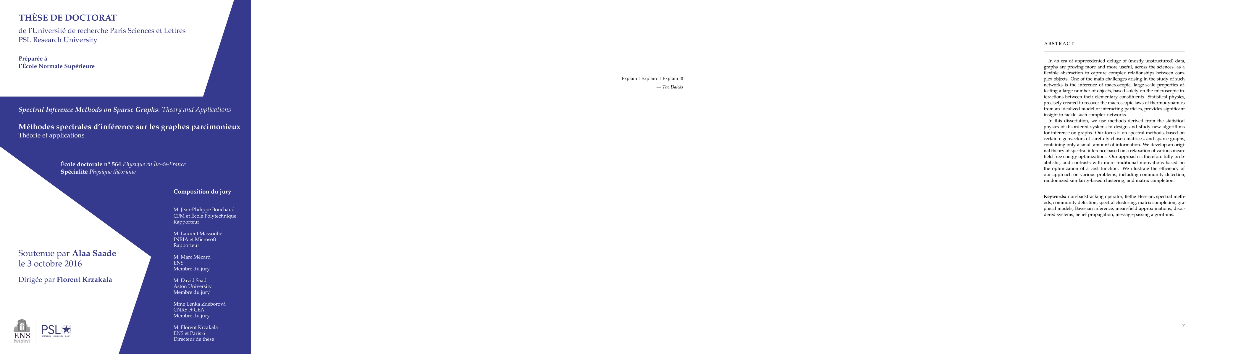 This paper develops new spectral inference methods for sparse graphs, leveraging statistical physics to infer macroscopic properties from microscopic interactions. The authors propose a probabilistic theory based on mean-field free energy optimizations, demonstrating its effectiveness in community detection, clustering, and matrix completion.