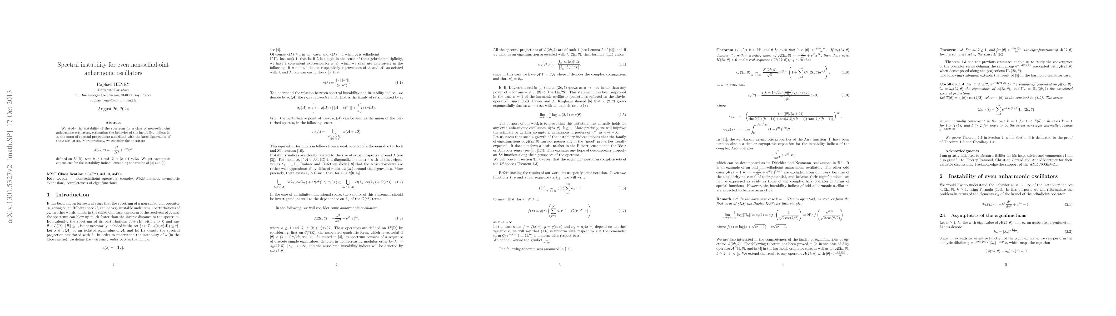This paper investigates the spectral instability of non-selfadjoint anharmonic oscillators, providing asymptotic expansions for the instability indices linked to large eigenvalues. It extends previous findings by Davies and Davies-Kuijlaars.