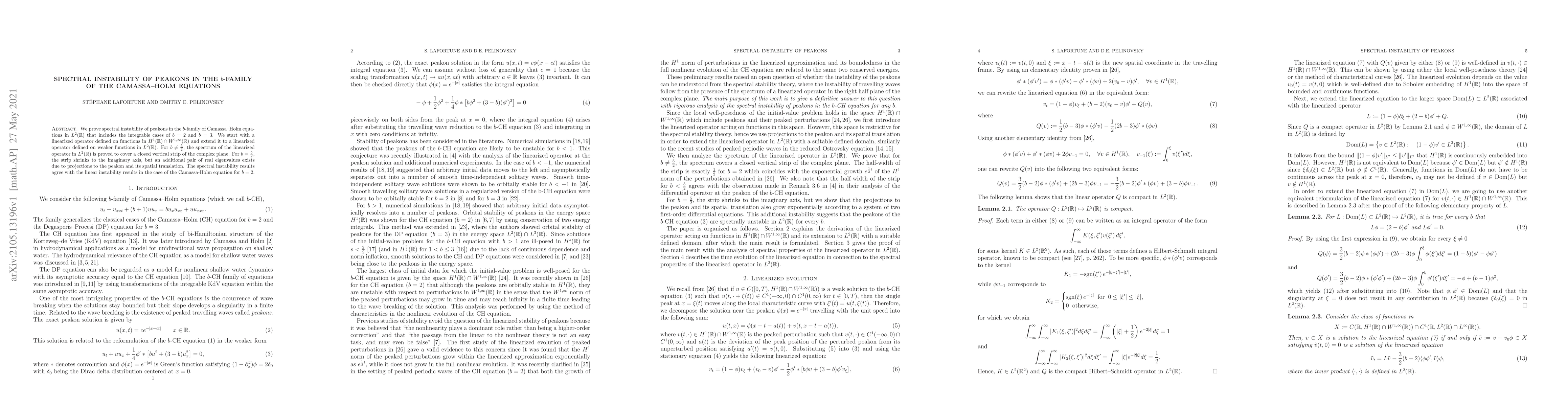 Researchers prove that peakons in a specific type of nonlinear equation exhibit spectral instability for certain values of a parameter, leading to unstable solutions that can grow exponentially.