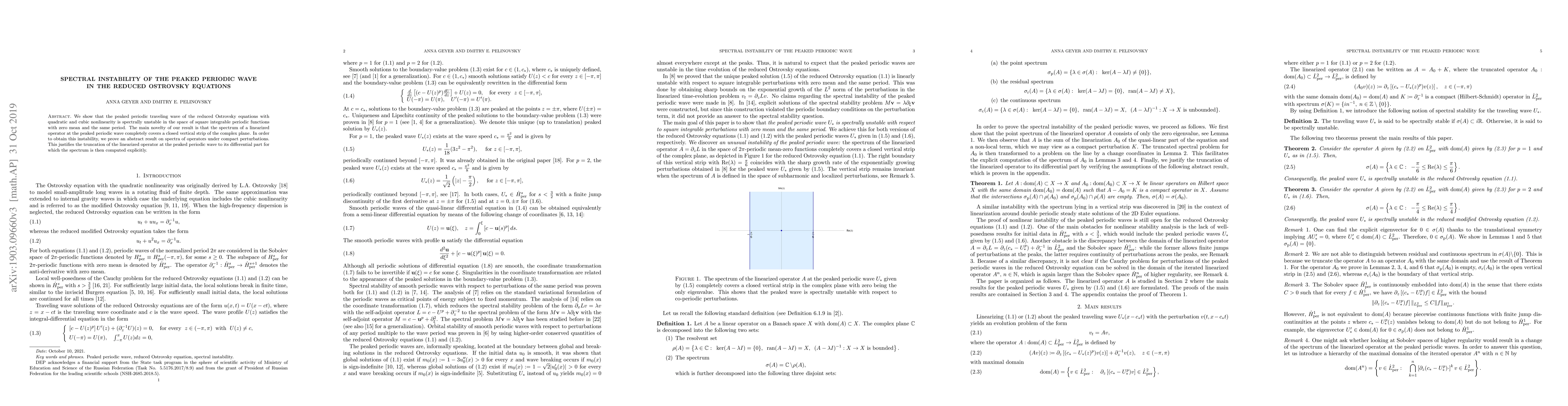 Summary: The research reveals spectral instability of peaked periodic waves in the reduced Ostrovsky equation, demonstrating that the instability arises due to the spectrum of a linearized operator covering a closed vertical strip in the complex plane, marking a novel instability phenomenon.