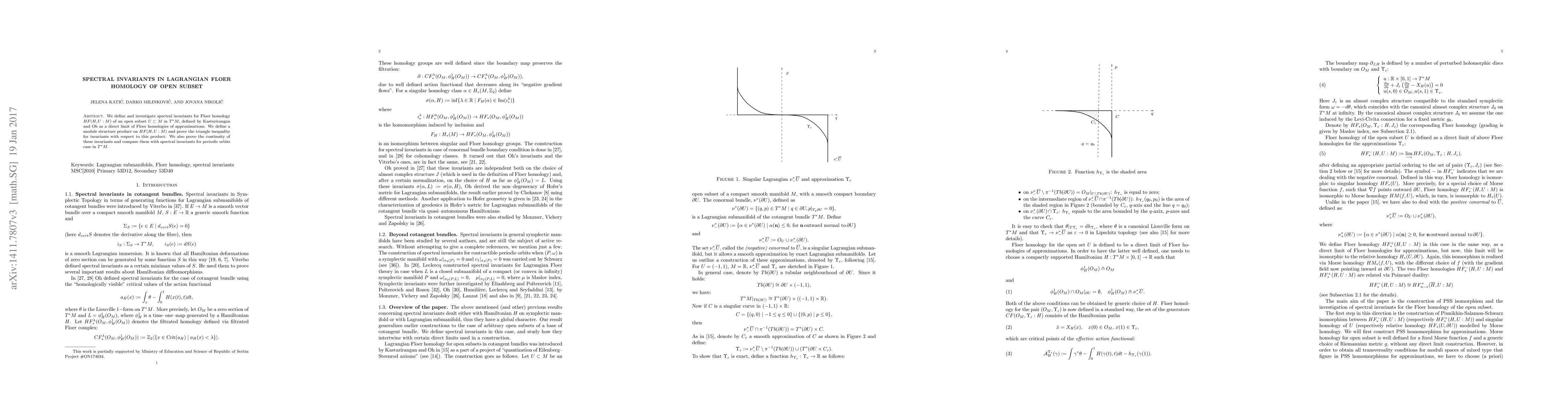 This paper defines spectral invariants for the Lagrangian Floer homology of open subsets in cotangent bundles, establishing a module structure product and proving the triangle inequality and continuity for these invariants. It also compares these invariants with those for periodic orbits.