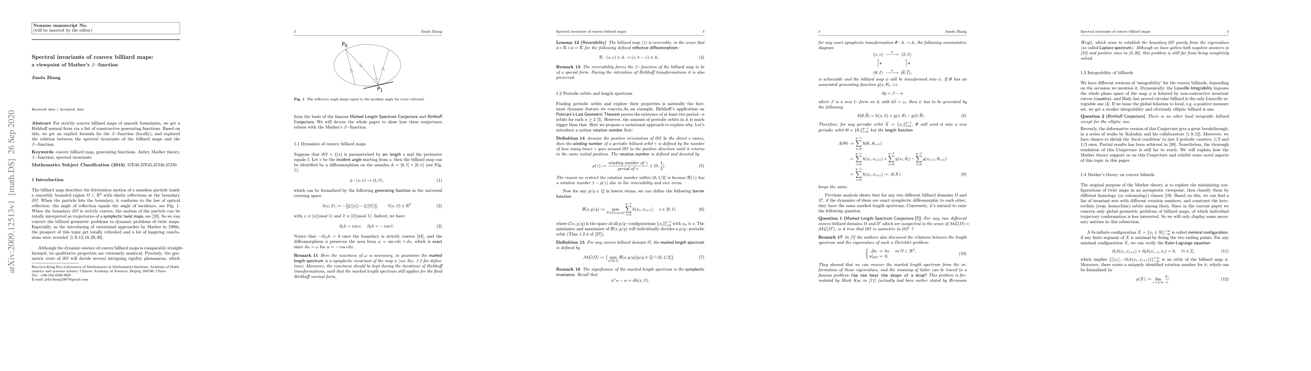 For strictly convex billiard maps of smooth boundaries, we get a Birkhoff normal form via a list of constructive generating functions. Based on this, we get an explicit formula for the beta function (locally), and explored the relation between the spectral invariants of the billiard maps and the beta function.