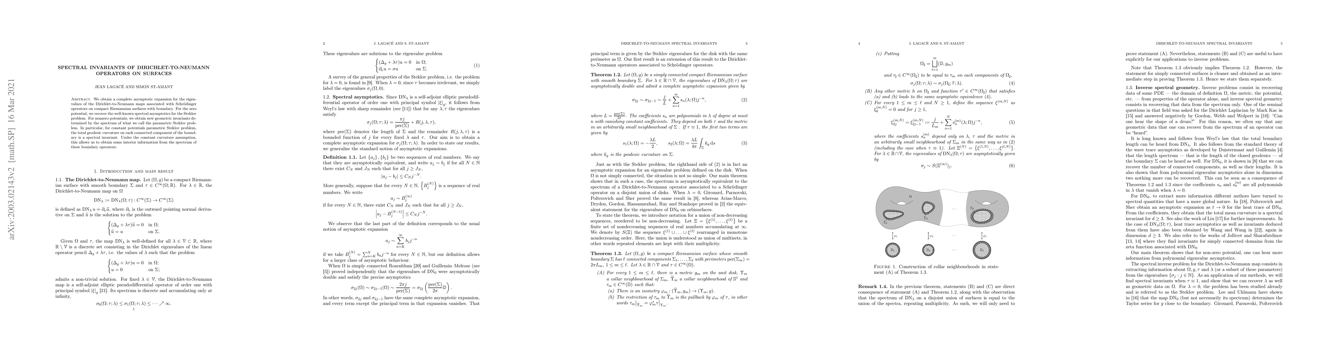 We obtain a complete asymptotic expansion for the eigenvalues of the Dirichlet-to-Neumann maps associated with Schr\"odinger operators on compact Riemannian surfaces with boundary. For the zero potential, we recover the well-known spectral asymptotics for the Steklov problem. For nonzero potentials, we obtain new geometric invariants determined by the spectrum of what we call the parametric Steklov problem. In particular, for constant potentials parametric Steklov problem, the total geodesic curvature on each connected component of the boundary is a spectral invariant. Under the constant curvature assumption, this allows us to obtain some interior information from the spectrum of these boundary operators.