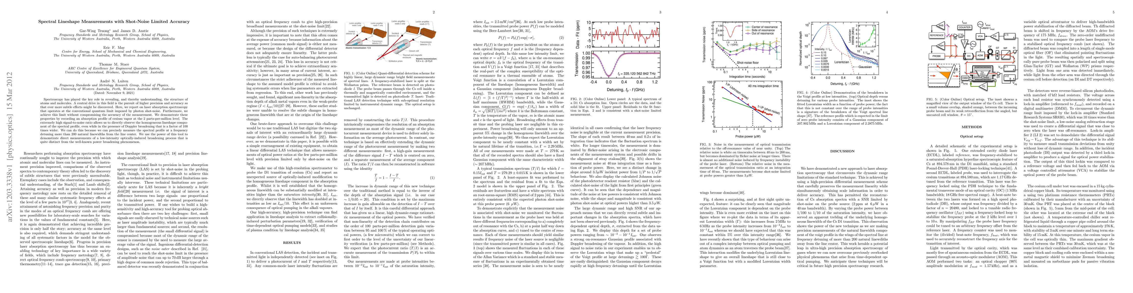 Spectroscopy has played the key role in revealing, and thereby understanding, the structure of atoms and molecules. A central drive in this field is the pursuit of higher precision and accuracy so that ever more subtle effects might be discovered. Here, we report on laser absorption spectroscopy that operates at the conventional quantum limit imposed by photon shot-noise. Furthermore, we achieve this limit without compromising the accuracy of the measurement. We demonstrate these properties by recording an absorption profile of cesium vapor at the 2 parts-per-million level. The extremely high signal-to-noise ratio allows us to directly observe the homogeneous lineshape component of the spectral profile, even while in the presence of Doppler broadening that is a factor of 100 times wider. We can do this because we can precisely measure the spectral profile at a frequency detuning more than 200 natural linewidths from the line center. We use the power of this tool to demonstrate direct measurements of a low-intensity optically-induced broadening process that is quite distinct from the well-known power broadening phenomenon.