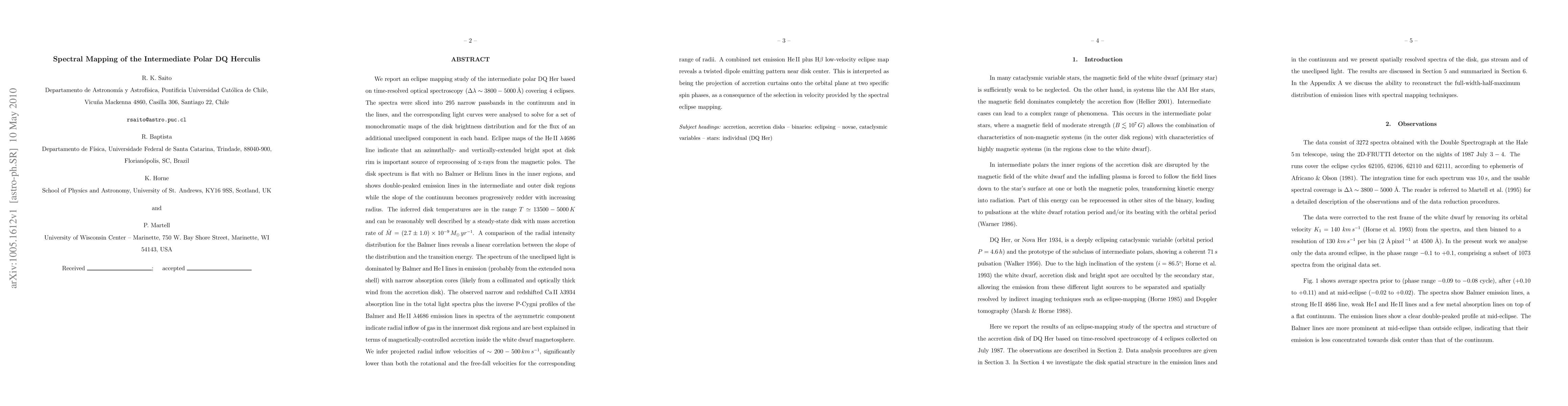 We report an eclipse mapping study of the intermediate polar DQ Her based on time-resolved optical spectroscopy (~3800-5000A) covering 4 eclipses. Eclipse maps of the HeII 4686 line indicate that an azimuthally-and vertically-extended bright spot at disk rim is important source of reprocessing of x-rays from the magnetic poles. The disk spectrum is flat with no Balmer or Helium lines in the inner regions, and shows double-peaked emission lines in the intermediate and outer disk regions while the slope of the continuum becomes progressively redder with increasing radius. The inferred disk temperatures are in the range T~13500-5000K and can be reasonably well described by a steady-state disk with mass accretion rate of dM/dt=(2.7+/-1.0)x10^-9 Msun/yr. A comparison of the radial intensity distribution for the Balmer lines reveals a linear correlation between the slope of the distribution and the transition energy. The spectrum of the uneclipsed light is dominated by Balmer and HeI lines in emission with narrow absorption cores. The observed narrow and redshifted CaII 3934 absorption line in the total light spectra plus the inverse P-Cygni profiles of the Balmer and HeII 4686 emission lines in spectra of the asymmetric component indicate radial inflow of gas in the innermost disk regions and are best explained in terms of magnetically-controlled accretion inside the white dwarf magnetosphere. We infer projected radial inflow velocities of ~200-500km/s, significantly lower than both the rotational and the free-fall velocities for the corresponding range of radii. A combined net emission HeII plus Hbeta low-velocity eclipse map reveals a twisted dipole emitting pattern near disk center. This is interpreted as being the projection of accretion curtains onto the orbital plane at two specific spin phases, as a consequence of the selection in velocity provided by the spectral eclipse mapping.