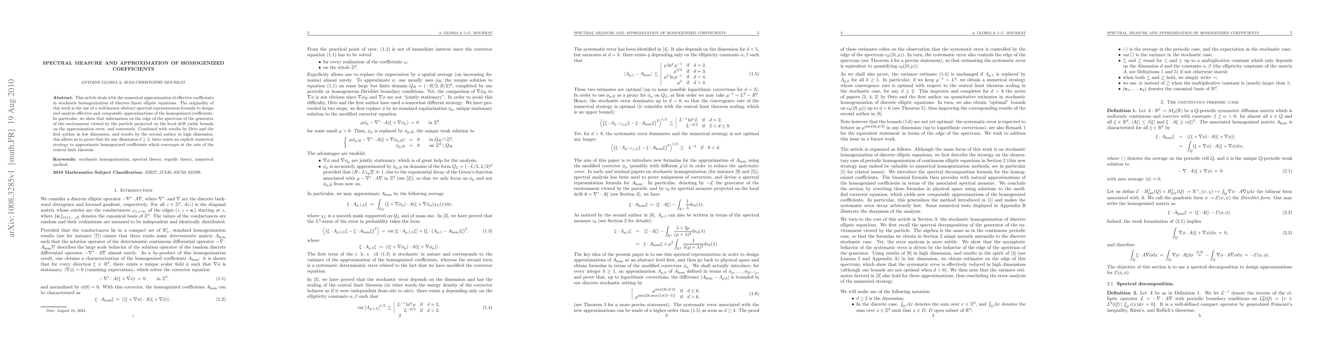 This article deals with the numerical approximation of effective coefficients in stochastic homogenization of discrete linear elliptic equations. The originality of this work is the use of a well-known abstract spectral representation formula to design and analyze effective and computable approximations of the homogenized coefficients. In particular, we show that information on the edge of the spectrum of the generator of the environment viewed by the particle projected on the local drift yields bounds on the approximation error, and conversely. Combined with results by Otto and the first author in low dimension, and results by the second author in high dimension, this allows us to prove that for any dimension, there exists an explicit numerical strategy to approximate homogenized coefficients which converges at the rate of the central limit theorem.