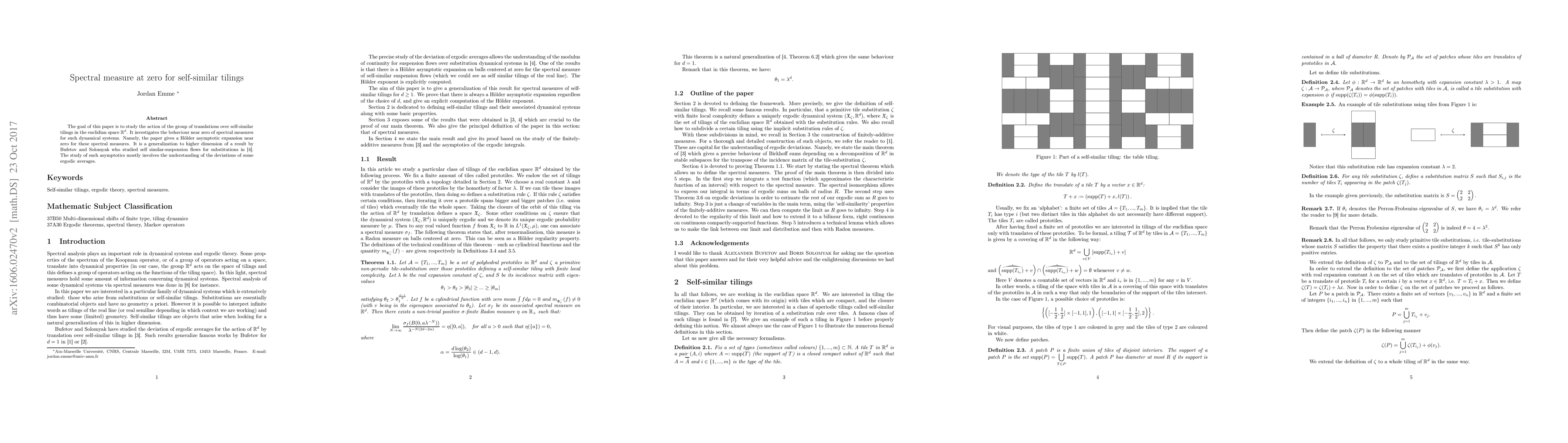 This paper examines the behavior of spectral measures near zero for self-similar tilings in Euclidean space, providing a Hölder asymptotic expansion. It generalizes prior work on self-similar suspension flows to higher dimensions, focusing on understanding deviations in ergodic averages.
