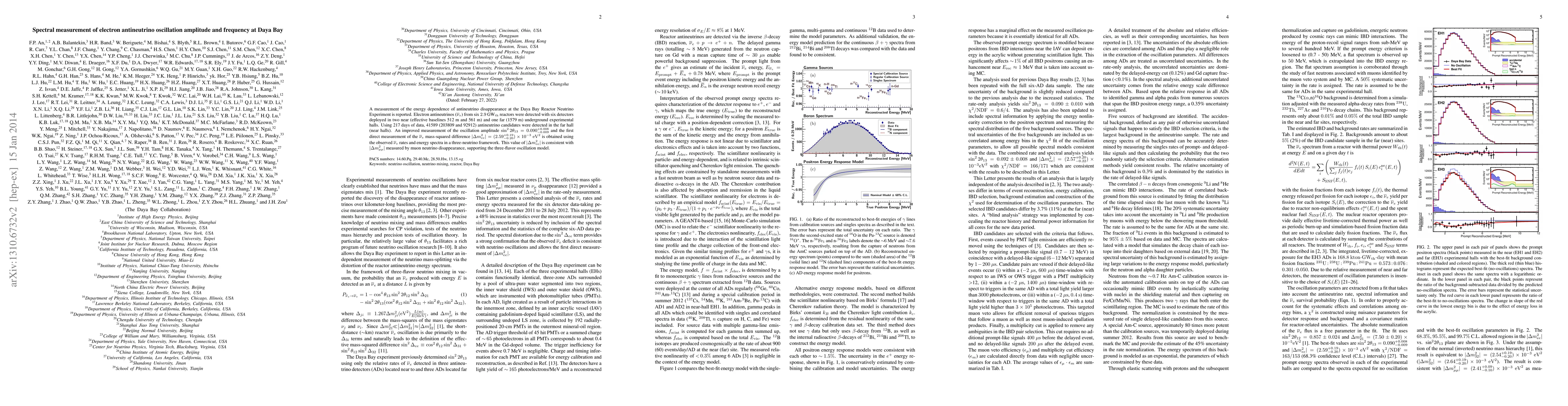 The Daya Bay Reactor Neutrino Experiment measured the energy dependence of electron antineutrino disappearance, yielding an improved oscillation amplitude $\sin^{2}2\theta_{13} = 0.090^{+0.008}_{-0.009}$. It also provided the first direct measurement of the electron antineutrino mass-squared difference $|\Delta m^{2}_{ee}| = (2.59 \pm 0.20) \times 10^{-3}\ {\rm eV}^2$, confirming the three-flavor oscillation model.