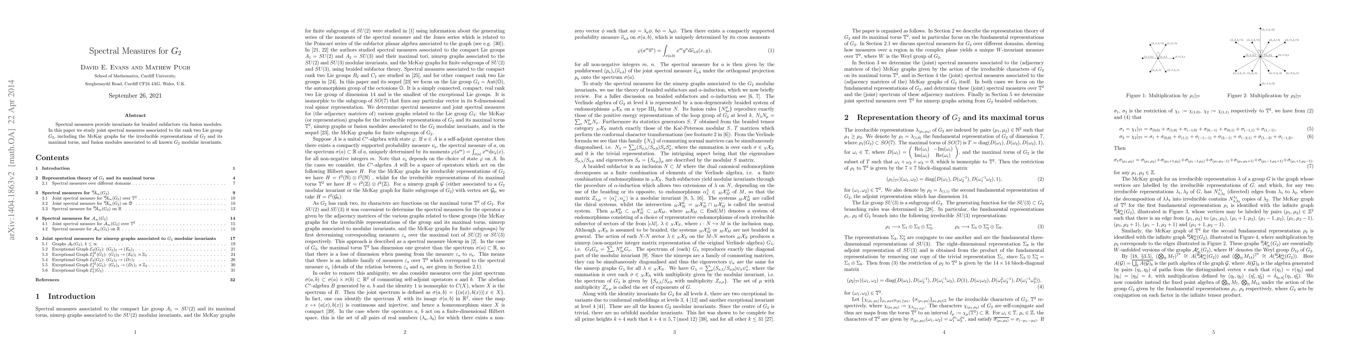 This paper studies spectral measures for the Lie group $G_2$, which provides invariants for braided subfactors via fusion modules, including McKay graphs and modular invariants.