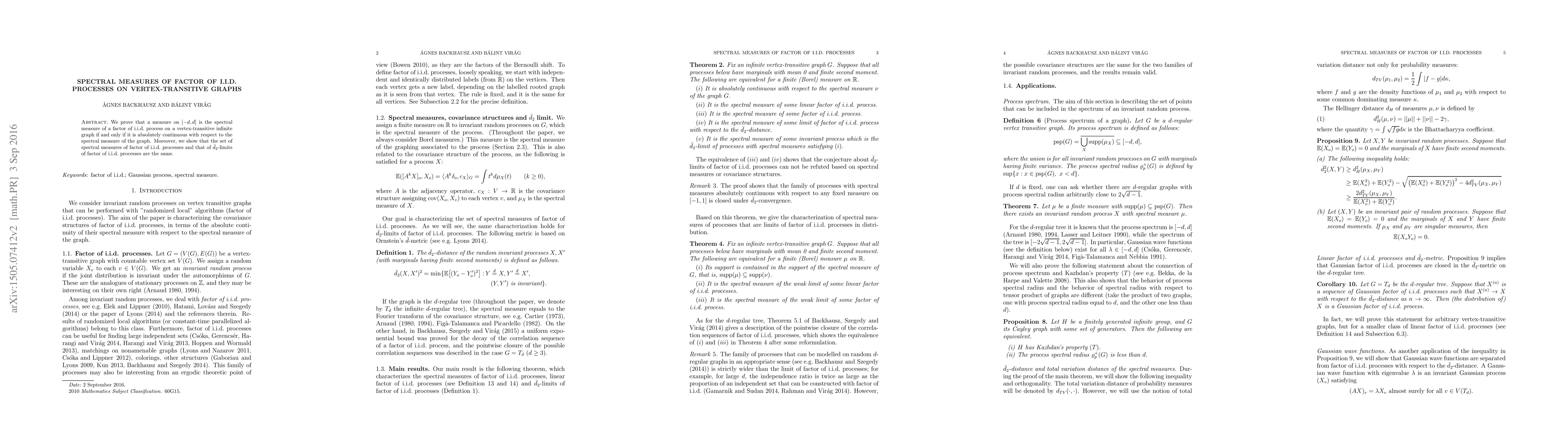 We prove that a measure on $[-d, d]$ is the spectral measure of a factor of i.i.d. process on a vertex-transitive infinite graph if and only if it is absolutely continuous with respect to the spectral measure of the graph. Moreover, we show that the set of spectral measures of factor of i.i.d. processes and that of $\bar d_2$-limits of factor of i.i.d. processes are the same.