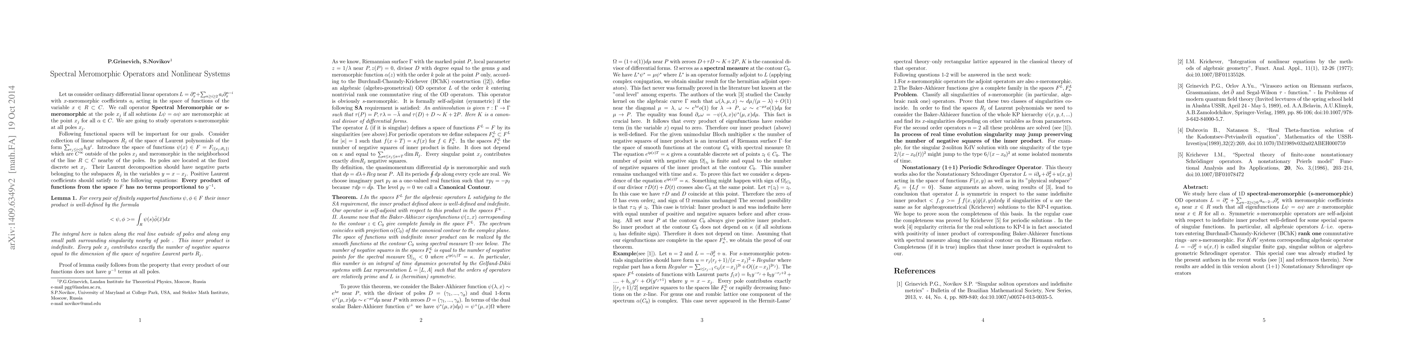 Researchers study 1D spectral-meromorphic operators with meromorphic coefficients that lead to x-meromorphic eigenfunctions, with implications for self-adjoint operators and the KdV system.
