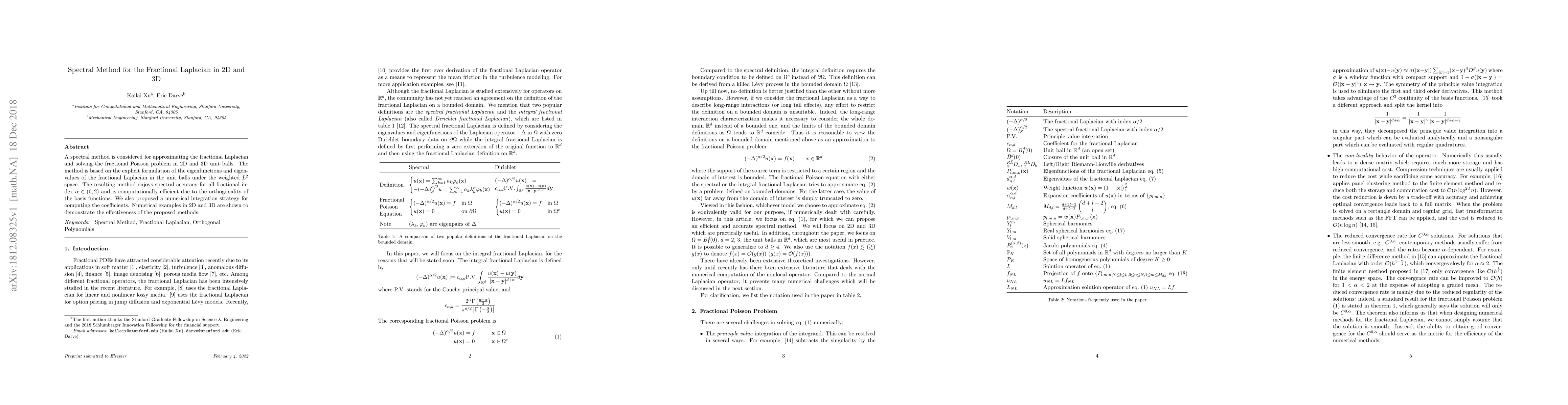 A spectral method is considered for approximating the fractional Laplacian and solving the fractional Poisson problem in 2D and 3D unit balls. The method is based on the explicit formulation of the eigenfunctions and eigenvalues of the fractional Laplacian in the unit balls under the weighted $L^2$ space. The resulting method enjoys spectral accuracy for all fractional index $\alpha\in (0,2)$ and is computationally efficient due to the orthogonality of the basis functions. We also proposed a numerical integration strategy for computing the coefficients. Numerical examples in 2D and 3D are shown to demonstrate the effectiveness of the proposed methods.