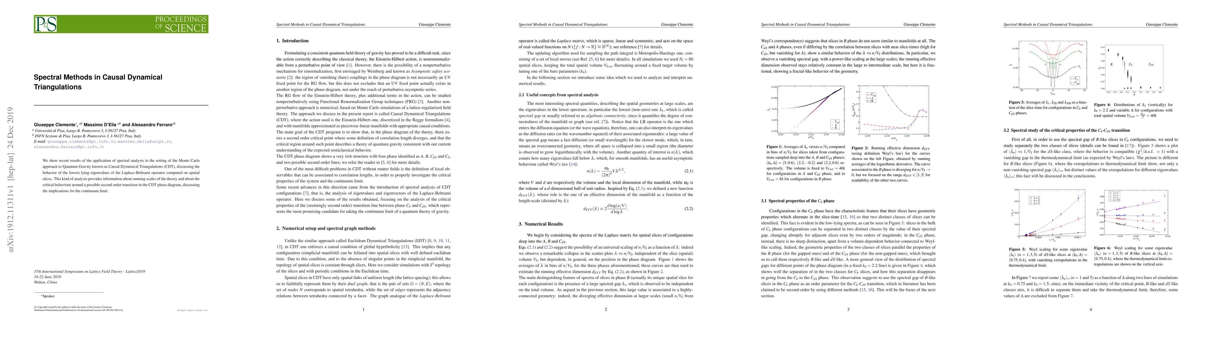 This paper applies spectral analysis in Causal Dynamical Triangulations (CDT) to Quantum Gravity, focusing on the lowest eigenvalues of the Laplace-Beltrami operator to infer running scales and critical behavior, with implications for the continuum limit and potential second-order phase transitions.