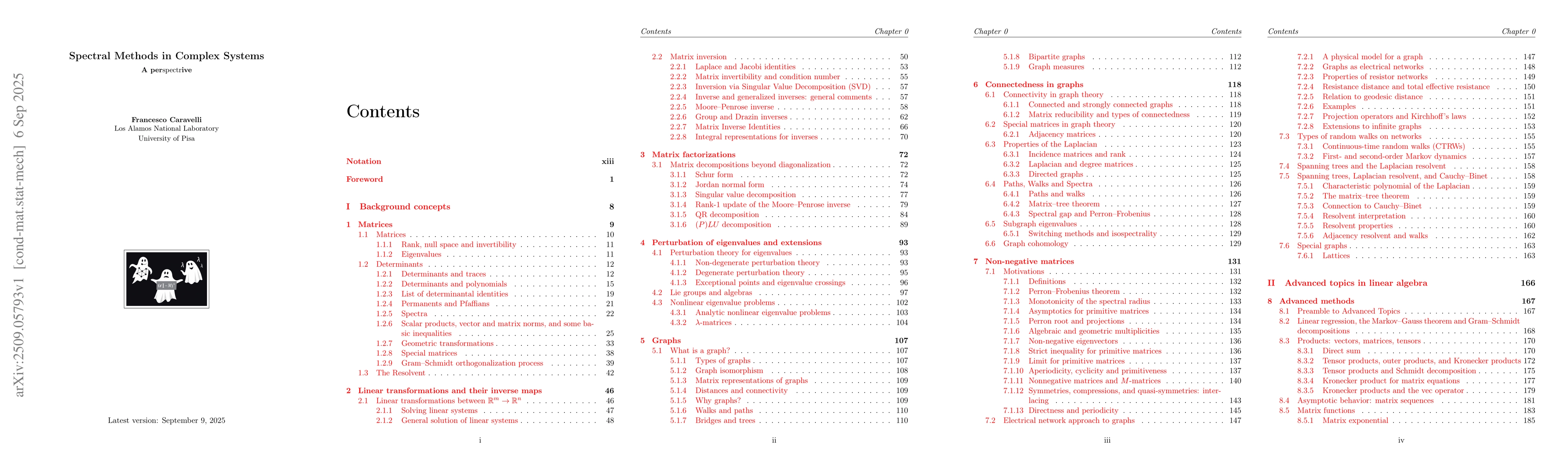 These notes offer a unified introduction to spectral methods for the study of complex systems. They are intended as an operative manual rather than a theorem-proof textbook: the emphasis is on tools, identities, and perspectives that can be readily applied across disciplines. Beginning with a compendium of matrix identities and inversion techniques, the text develops the connections between spectra, dynamics, and structure in finite-dimensional systems. Applications range from dynamical stability and random walks on networks to input-output economics, PageRank, epidemic spreading, memristive circuits, synchronization phenomena, and financial stability. Throughout, the guiding principle is that eigenvalues, eigenvectors, and resolvent operators provide a common language linking problems in physics, mathematics, computer science, and beyond. The presentation is informal, accessible to advanced undergraduates, yet broad enough to serve as a reference for researchers interested in spectral approaches to complex systems.