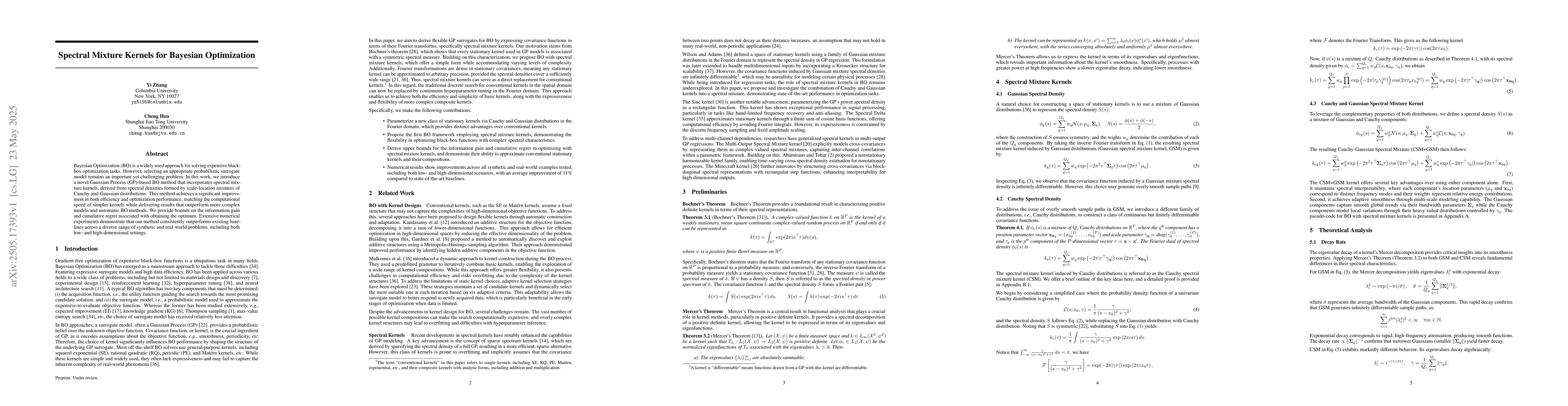 The research introduces a novel Gaussian Process (GP)-based Bayesian Optimization (BO) method using spectral mixture kernels derived from scale-location mixtures of Cauchy and Gaussian distributions.
