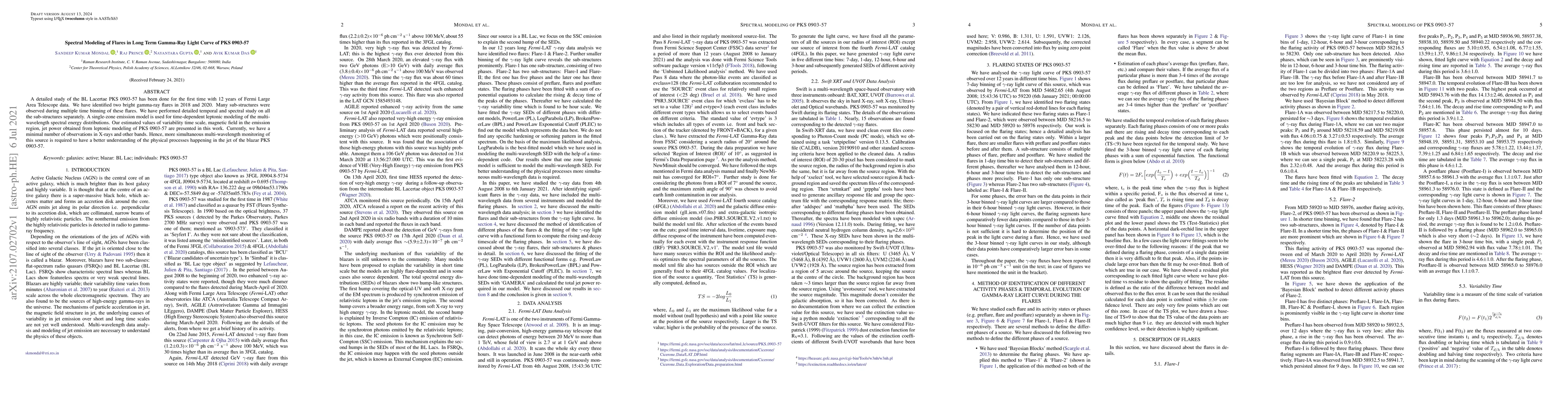 Researchers analyzed 12 years of Fermi data on blazar PKS 0903-57, identifying two gamma-ray flares with multiple sub-structures that suggest a single-zone emission model. The study aims to better understand the physical processes in the jet of this blazar.