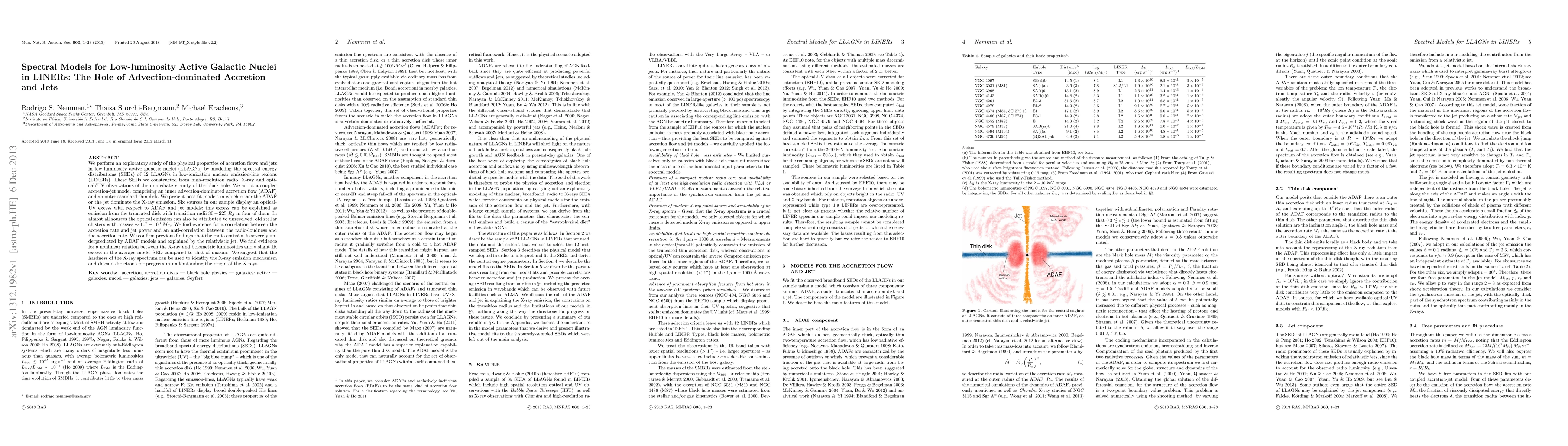 This study models the spectral energy distributions of 12 low-luminosity active galactic nuclei in LINERs, using high-resolution radio, X-ray, and optical/UV data. It finds that the X-ray emission is dominated by either an advection-dominated accretion flow or a relativistic jet, with a correlation between accretion rate and jet power.