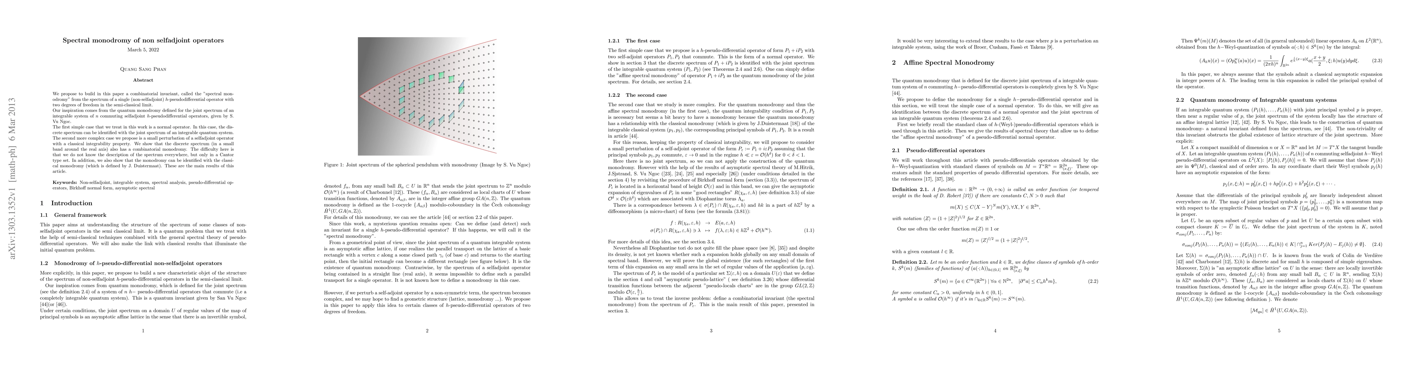 This paper introduces a combinatorial invariant, spectral monodromy, derived from the spectrum of non-selfadjoint h-pseudodifferential operators. It demonstrates this through normal operators and small perturbations of selfadjoint operators, showing that the discrete spectrum exhibits a combinatorial monodromy akin to classical monodromy.
