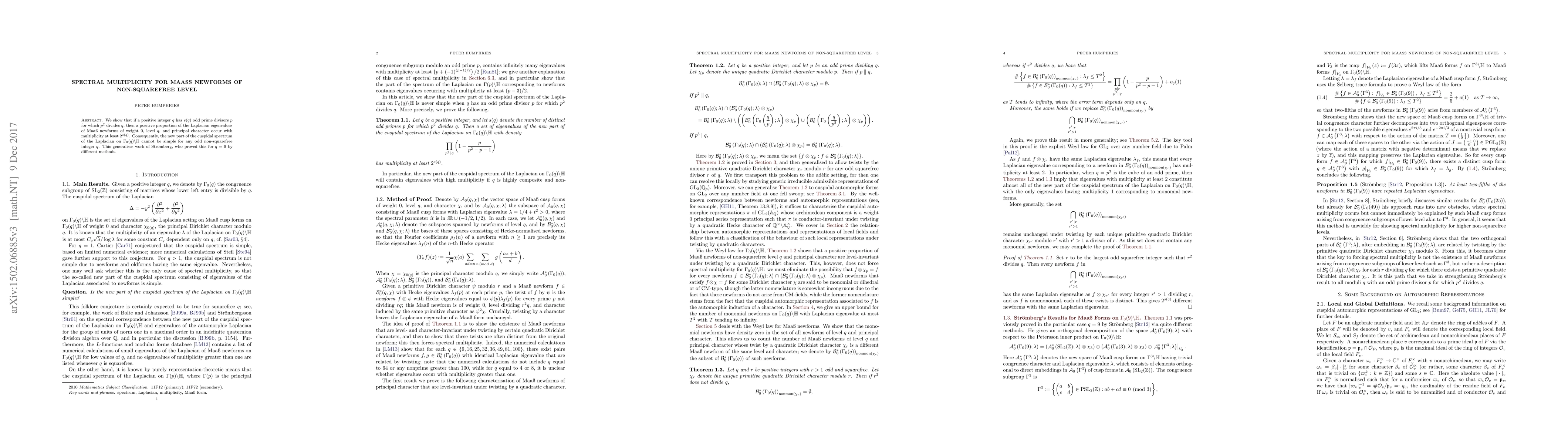 We show that if a positive integer $q$ has $s(q)$ odd prime divisors $p$ for which $p^2$ divides $q$, then a positive proportion of the Laplacian eigenvalues of Maass newforms of weight $0$, level $q$, and principal character occur with multiplicity at least $2^{s(q)}$. Consequently, the new part of the cuspidal spectrum of the Laplacian on $\Gamma_0(q) \backslash \mathbb{H}$ cannot be simple for any odd non-squarefree integer $q$. This generalises work of Stromberg, who proved this for $q = 9$ by different methods.