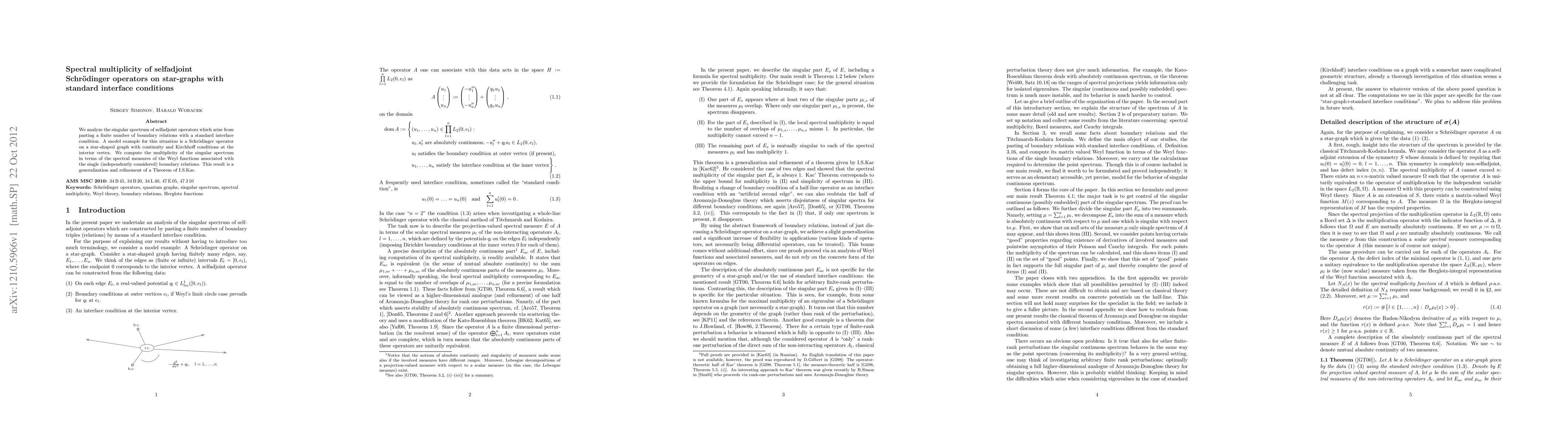 We analyze the singular spectrum of selfadjoint operators which arise from pasting a finite number of boundary relations with a standard interface condition. A model example for this situation is a Schroedinger operator on a star-shaped graph with continuity and Kirchhoff conditions at the interior vertex. We compute the multiplicity of the singular spectrum in terms of the spectral measures of the Weyl functions associated with the single (independently considered) boundary relations. This result is a generalization and refinement of Theorem of I.S. Kac.