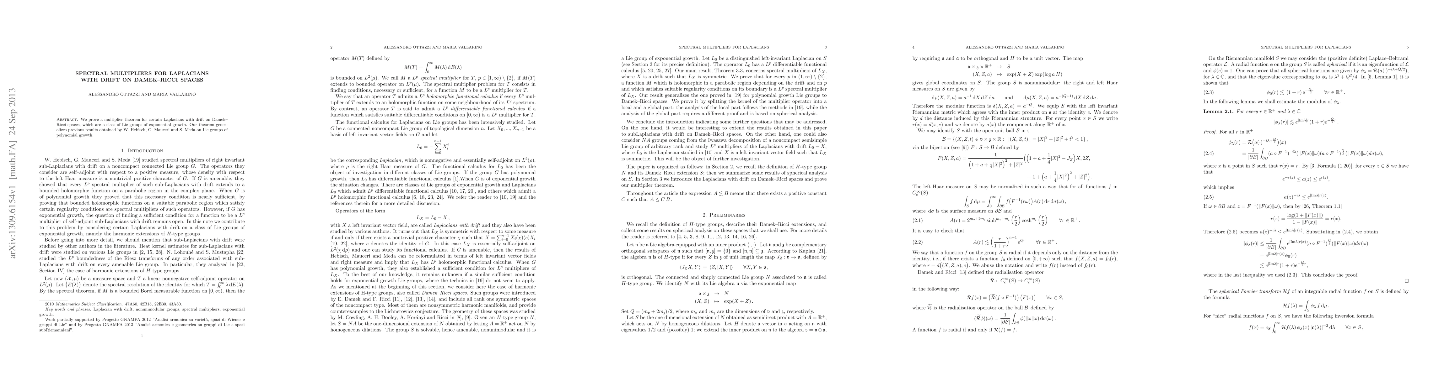 This paper proves a multiplier theorem for Laplacians with drift on Damek-Ricci spaces, generalizing previous results to groups of exponential growth.