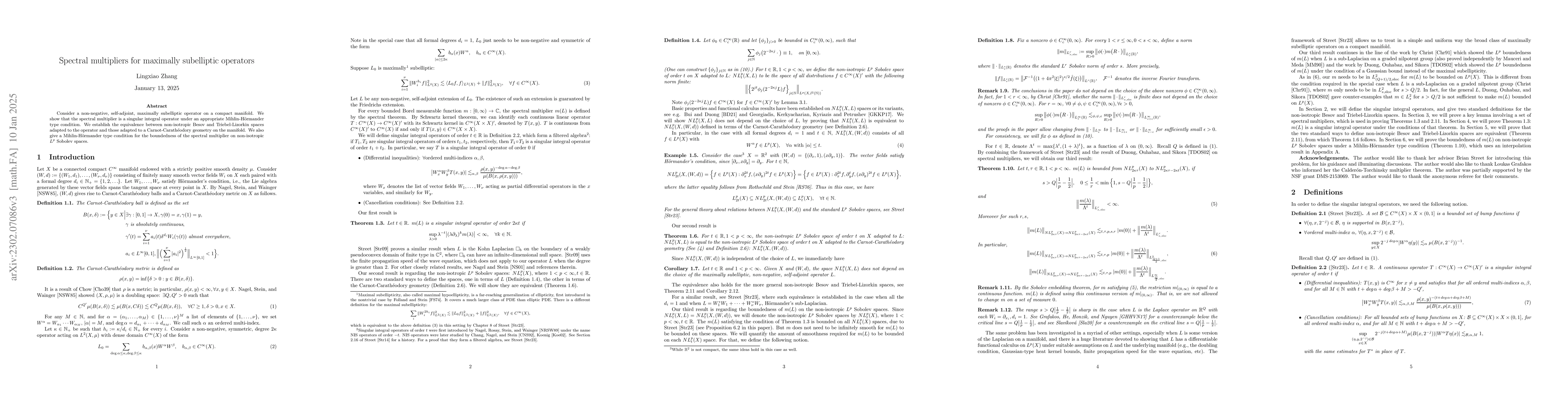 This paper demonstrates that the spectral multiplier for a maximally subelliptic operator on a compact manifold is a singular integral operator under a Mihlin-Hörmander condition. It further establishes equivalence between non-isotropic Besov and Triebel-Lizorkin spaces adapted to the operator and to a Carnot-Carathéodory geometry, and provides a condition for the boundedness of the spectral multiplier on non-isotropic $L^p$ Sobolev spaces.
