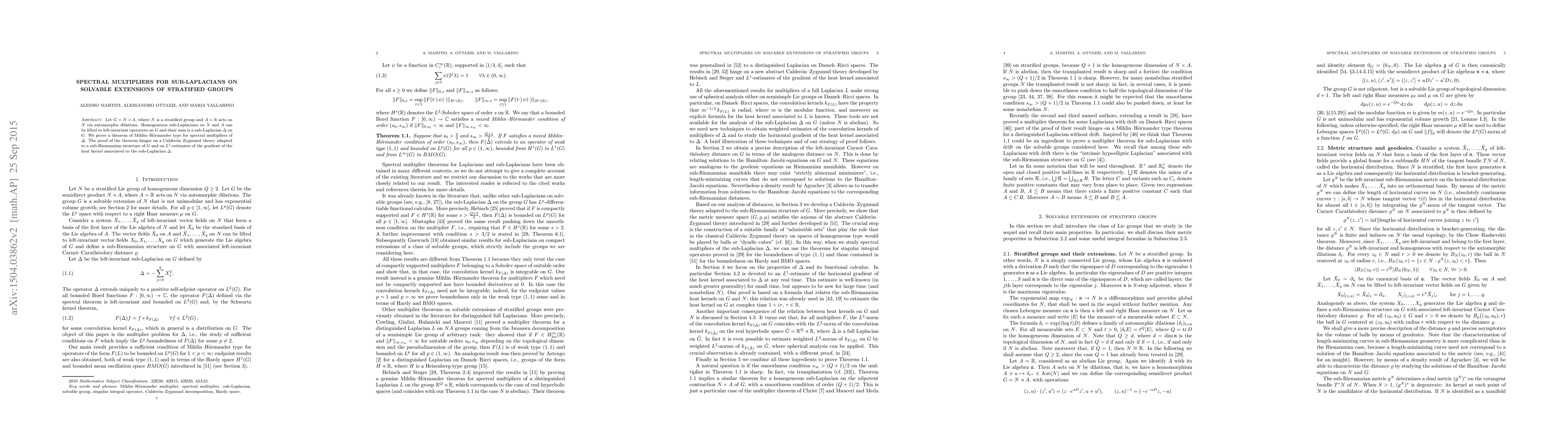 This paper develops a Mihlin-Hörmander theorem for spectral multipliers associated with a sub-Laplacian on solvable extensions of stratified groups, employing a Calderón-Zygmund theory tailored to sub-Riemannian structures and $L^1$-estimates of the heat kernel gradient.