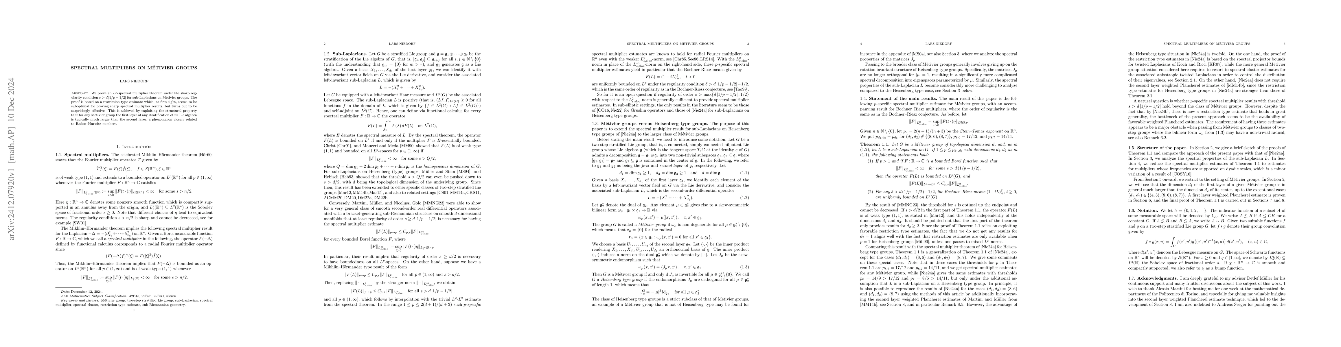 This paper establishes an $L^p$-spectral multiplier theorem for Métivier groups, proving a sharp regularity condition using a seemingly suboptimal restriction estimate, which proves effective due to the unique structural properties of these groups.