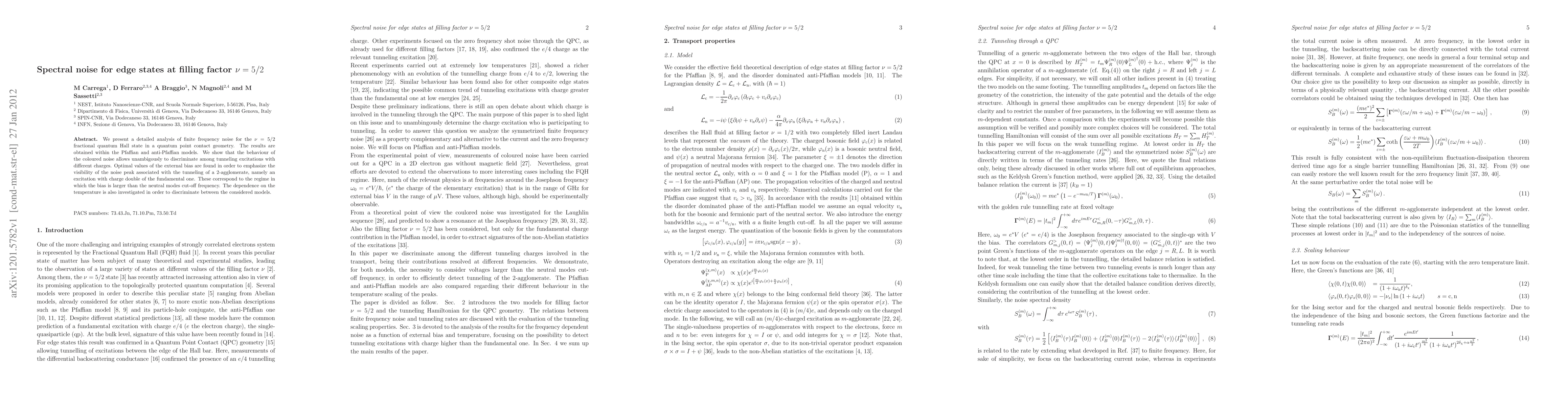 We present a detailed analysis of finite frequency noise for the $\nu=5/2$ fractional quantum Hall state in a quantum point contact geometry. The results are obtained within the Pfaffian and anti-Pfaffian models. We show that the behaviour of the coloured noise allows unambigously to discriminate among tunneling excitations with different charges. Optimal values of the external bias are found in order to emphasize the visibility of the noise peak associated with the tunneling of a 2-agglomerate, namely an excitation with charge double of the fundamental one. These correspond to the regime in which the bias is larger than the neutral modes cut-off frequency. The dependence on the temperature is also investigated in order to discriminate between the considered models.
