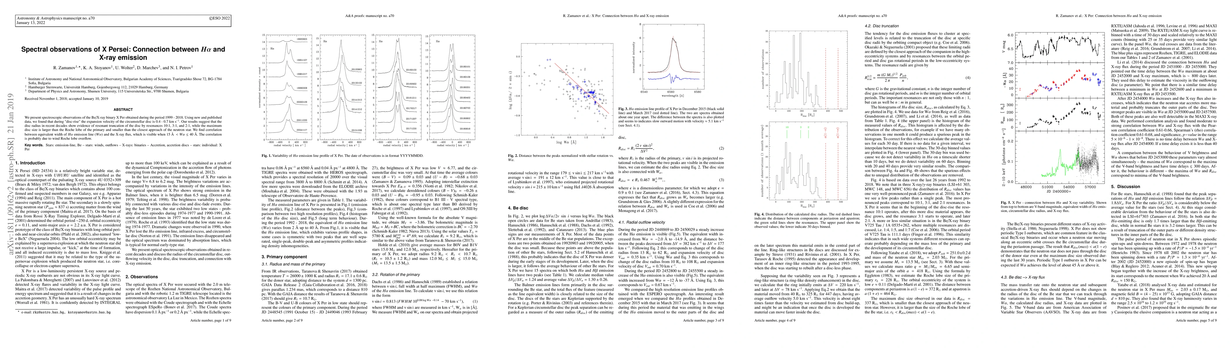 Researchers studied X Persei, a Be/X-ray binary, finding that its circumstellar disc expands at 0.4-0.7 km/s during the 'disc-rise' phase, with evidence of resonant truncation and a correlation between H-alpha emission line width and X-ray flux.