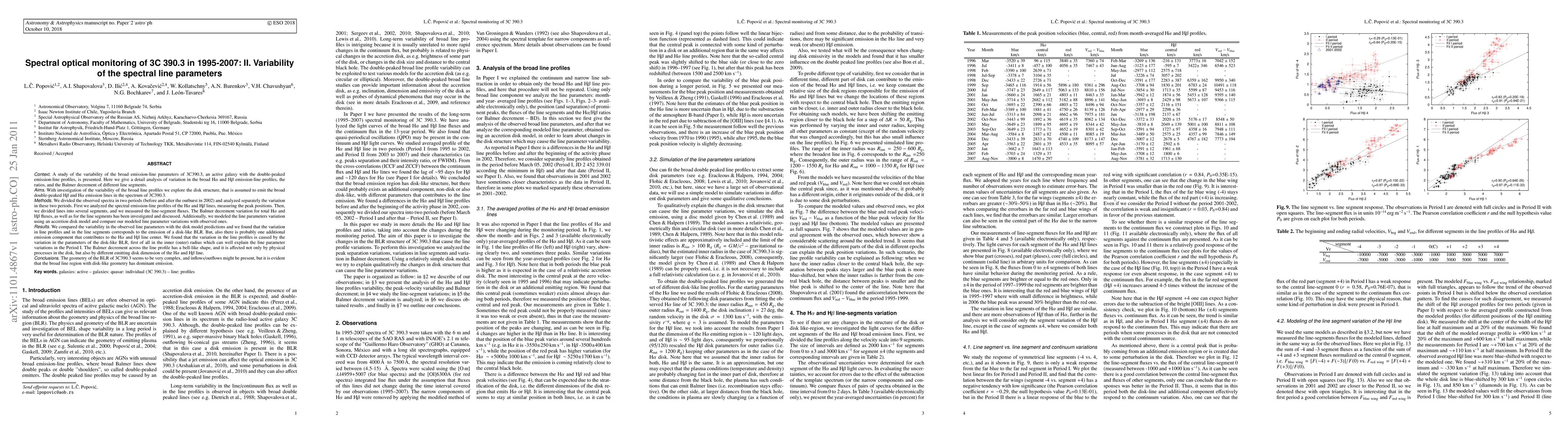 This study examines the variability of broad emission-line parameters in 3C 390.3, an active galaxy, focusing on the Ha and Hb lines. The analysis reveals complex variations in line profiles and segments, suggesting a disk-like broad line region with additional emission components, and indicates that the observed line parameter changes are primarily driven by variations in the disk's inner and outer radii.