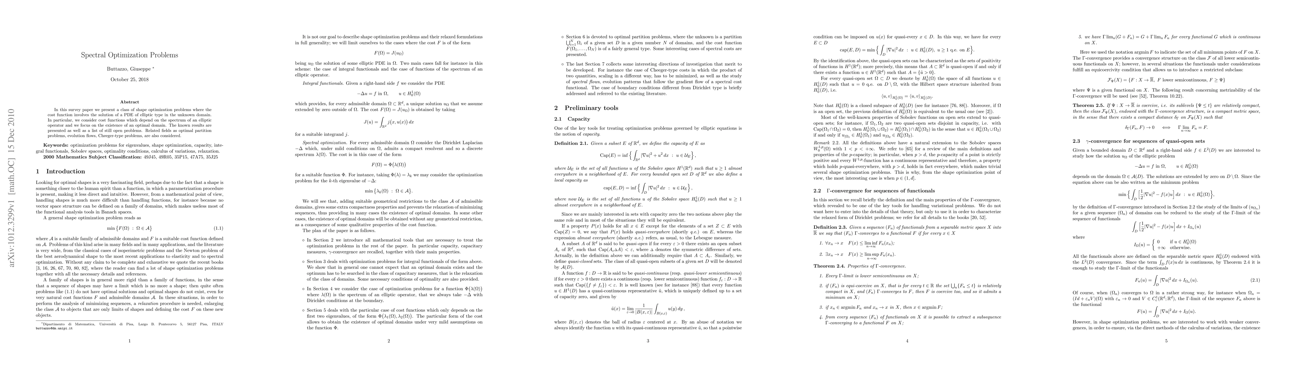This paper surveys shape optimization problems involving elliptic partial differential equations and their spectral properties, exploring existence of optimal domains and related open problems.