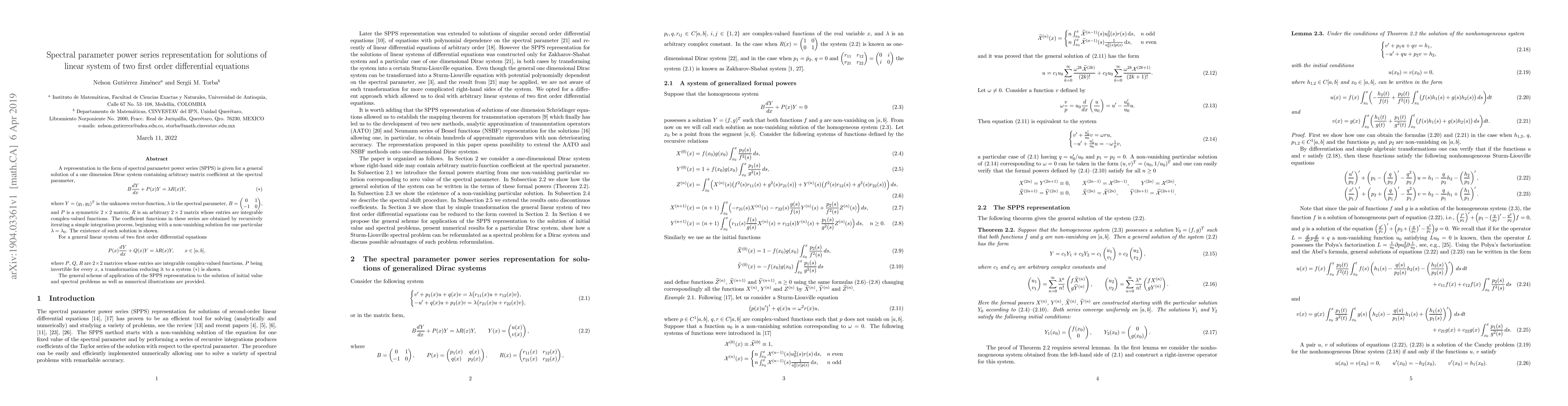 This paper presents a spectral parameter power series (SPPS) representation for the general solution of a linear system of two first-order differential equations, transforming complex systems into simpler forms solvable through recursive integration. The methodology is demonstrated with applications to initial value and spectral problems.