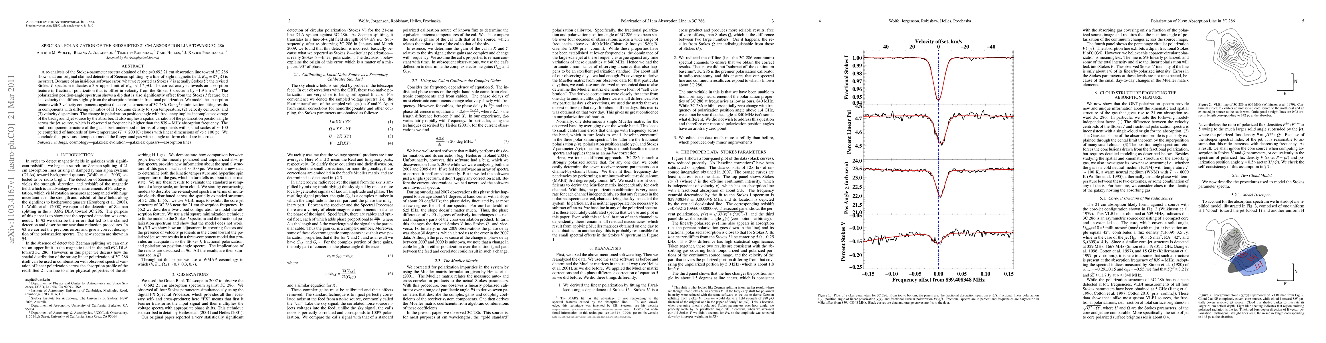 A re-analysis of 21 cm absorption line data toward 3C 286 reveals an offset absorption feature with a velocity difference from the Stokes I spectrum, indicating incomplete coverage of the background jet source by the absorber.