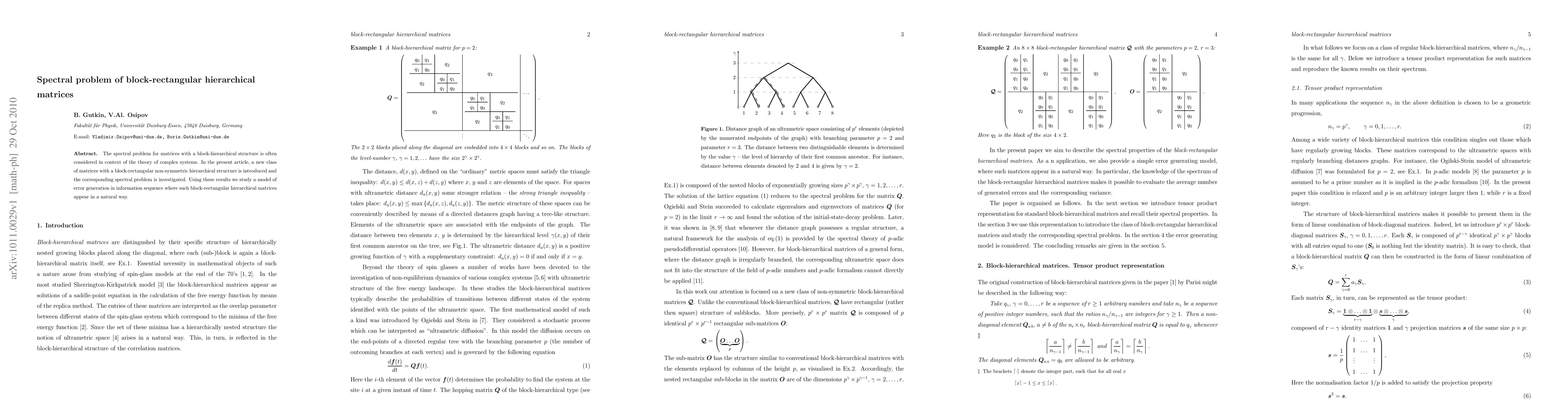 This paper introduces a new class of block-rectangular hierarchical matrices and investigates their spectral properties. The findings are applied to model error generation in information sequences where these matrices naturally occur.