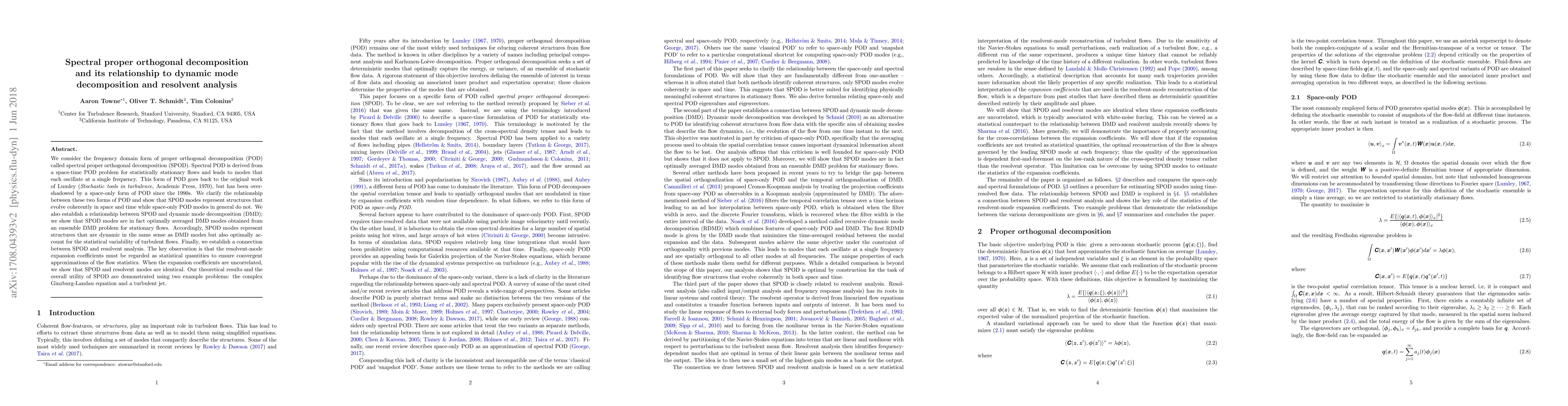 This paper explores spectral proper orthogonal decomposition (SPOD) in the frequency domain, clarifying its relationship to space-only POD, dynamic mode decomposition (DMD), and resolvent analysis. It demonstrates that SPOD modes represent coherent structures in space and time, and are optimally averaged DMD modes for stationary flows, while also showing that SPOD and resolvent modes are identical when expansion coefficients are uncorrelated.